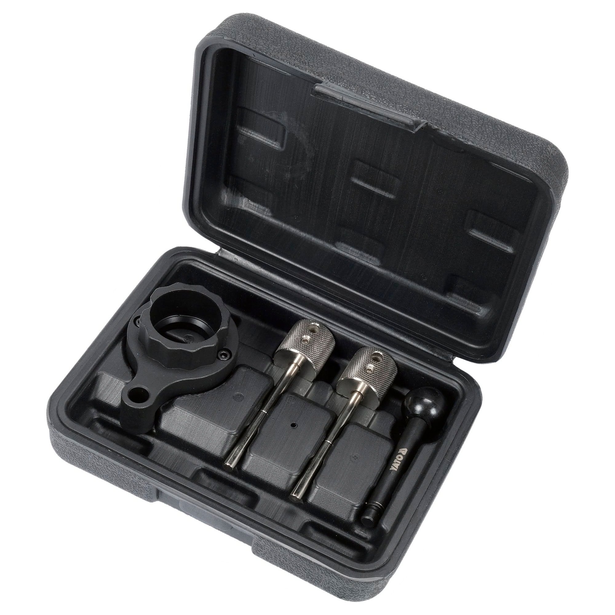 Yato ajoitustyökalu VAG 1.4 / 1.6 / 2.0 jakopään lukitustyökalusarja dieselmoottoreille. Sarja soveltuu VW-, Audi-, Seat- ja Škoda-ajoneuvojen moottorin ajoituksen lukitsemiseen ja säätämiseen huolto- ja korjaustöiden yhteydessä.