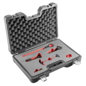 Ajoitustyökalu VAG-konsernin 1.2/1.4 TSI, TFSI, TGI bensiini- ja dieselmoottoreihin suunniteltu työkalusarja, joka sisältää tarvittavat välineet moottorin ajoituksen asettamiseen ja lukitsemiseen, ja toimitetaan kätevässä säilytyslaukussa.