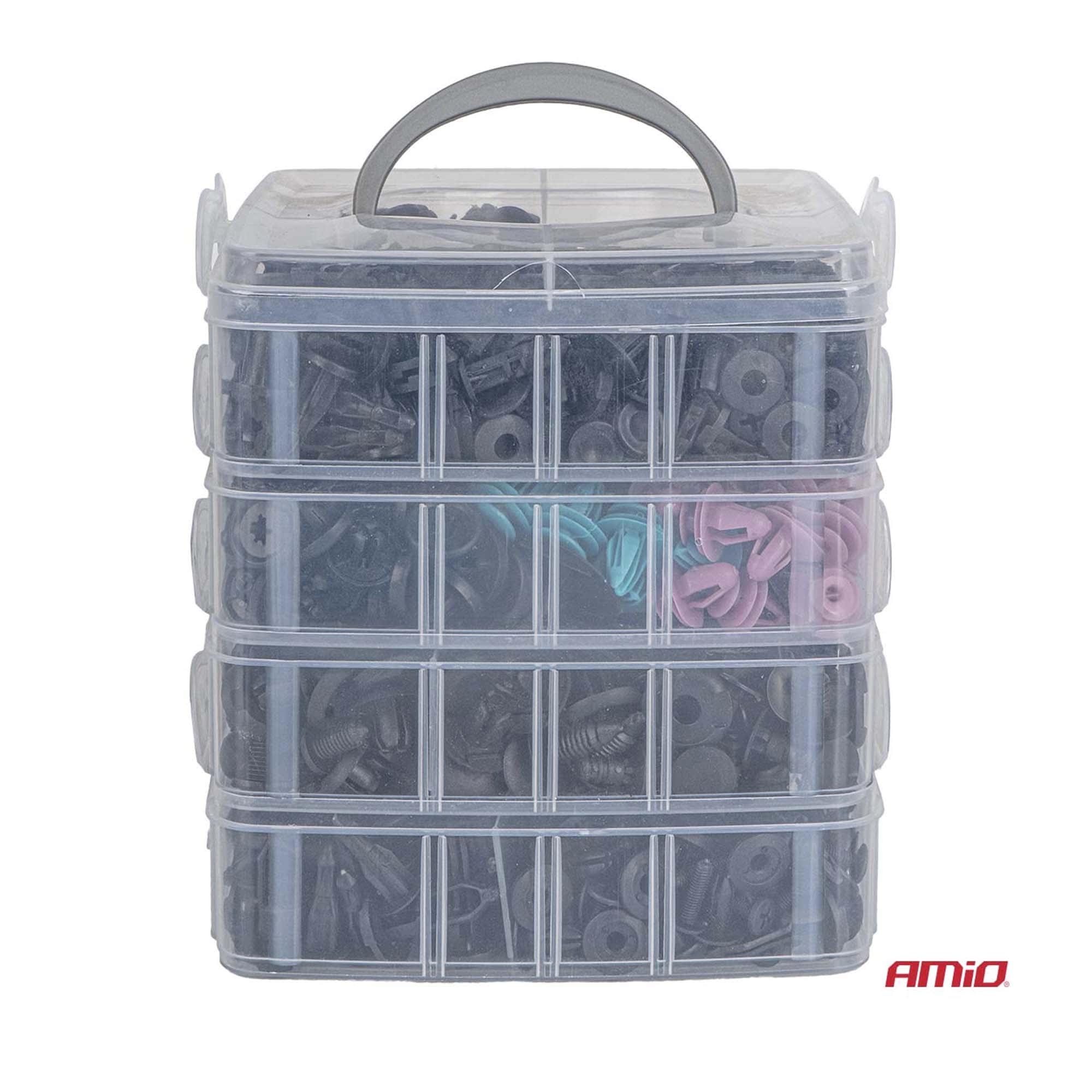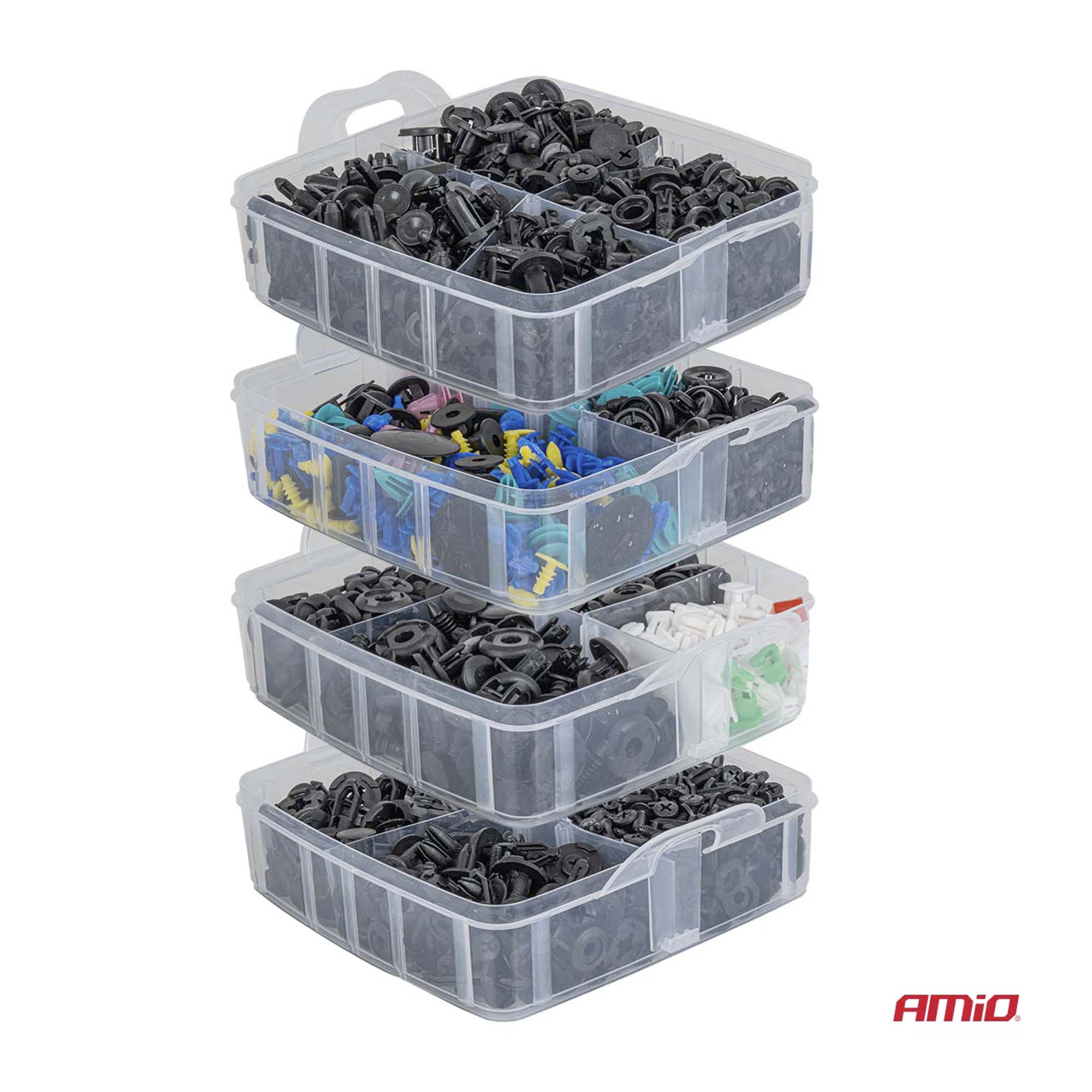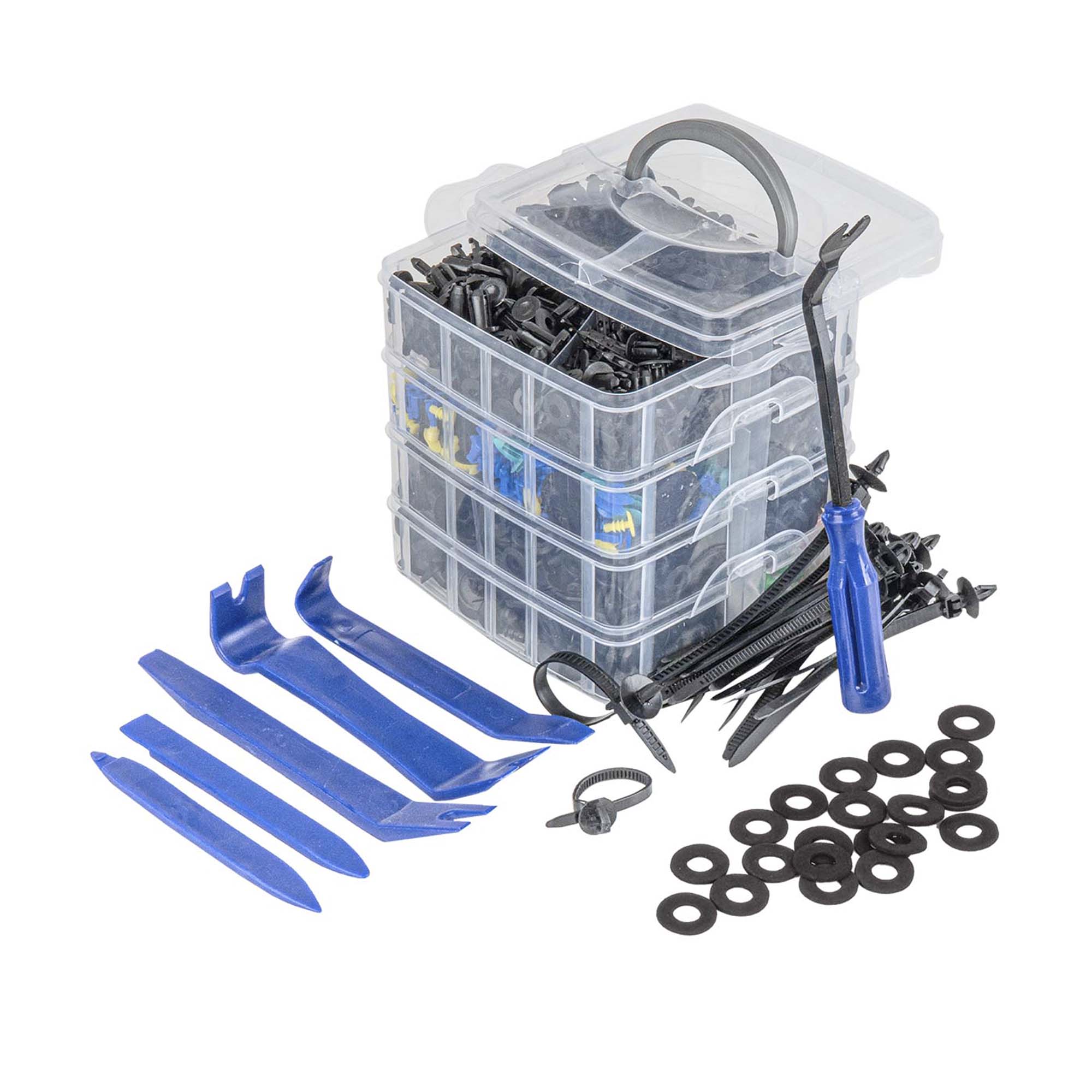 1211-osainen monipuolinen auton kiinnike- ja klipsisarja sisältää sekä kiinnikkeet että työkalut korin osien irrottamiseen ja asentamiseen. Sarja kattaa suuren määrän useita eri kiinnitystyyppejä.