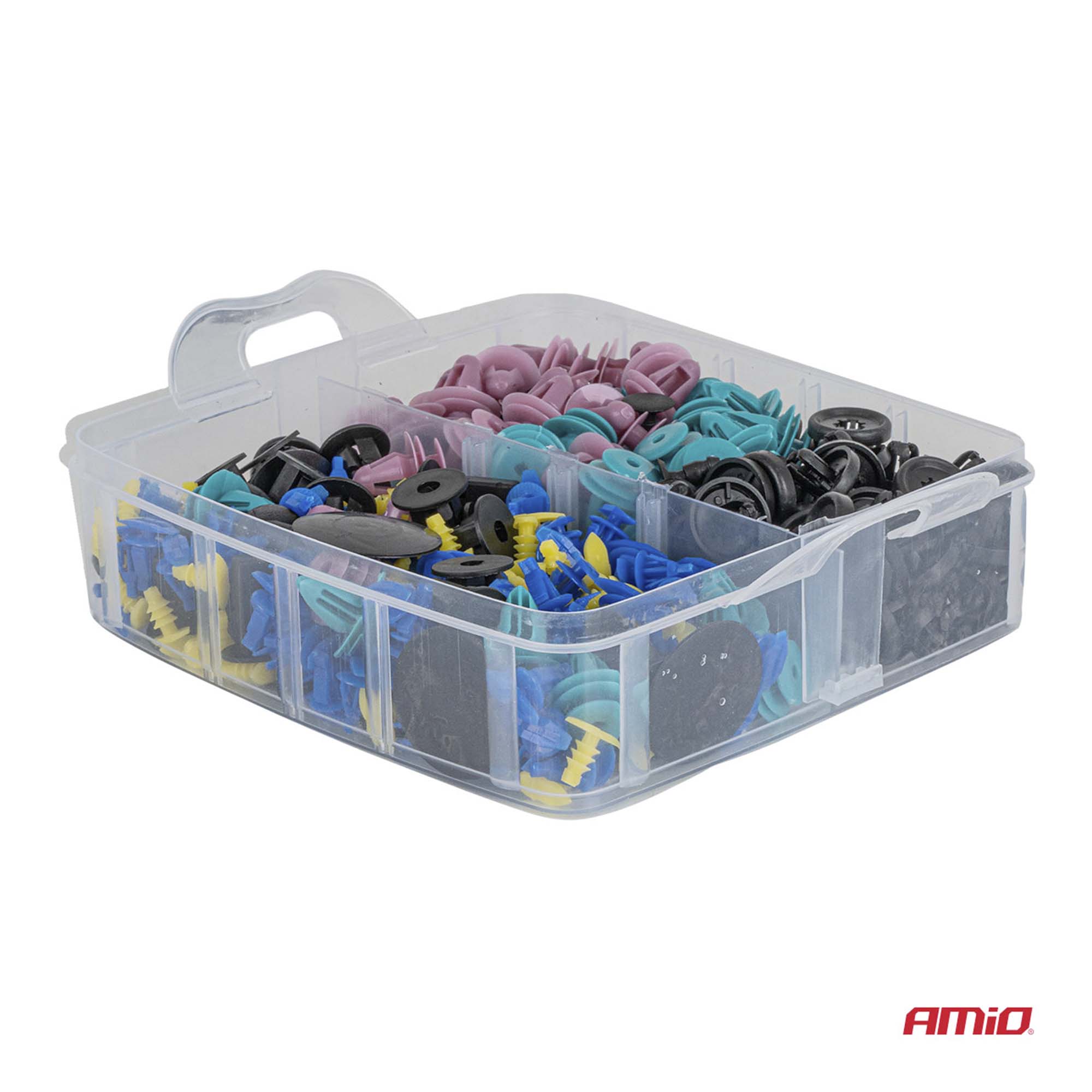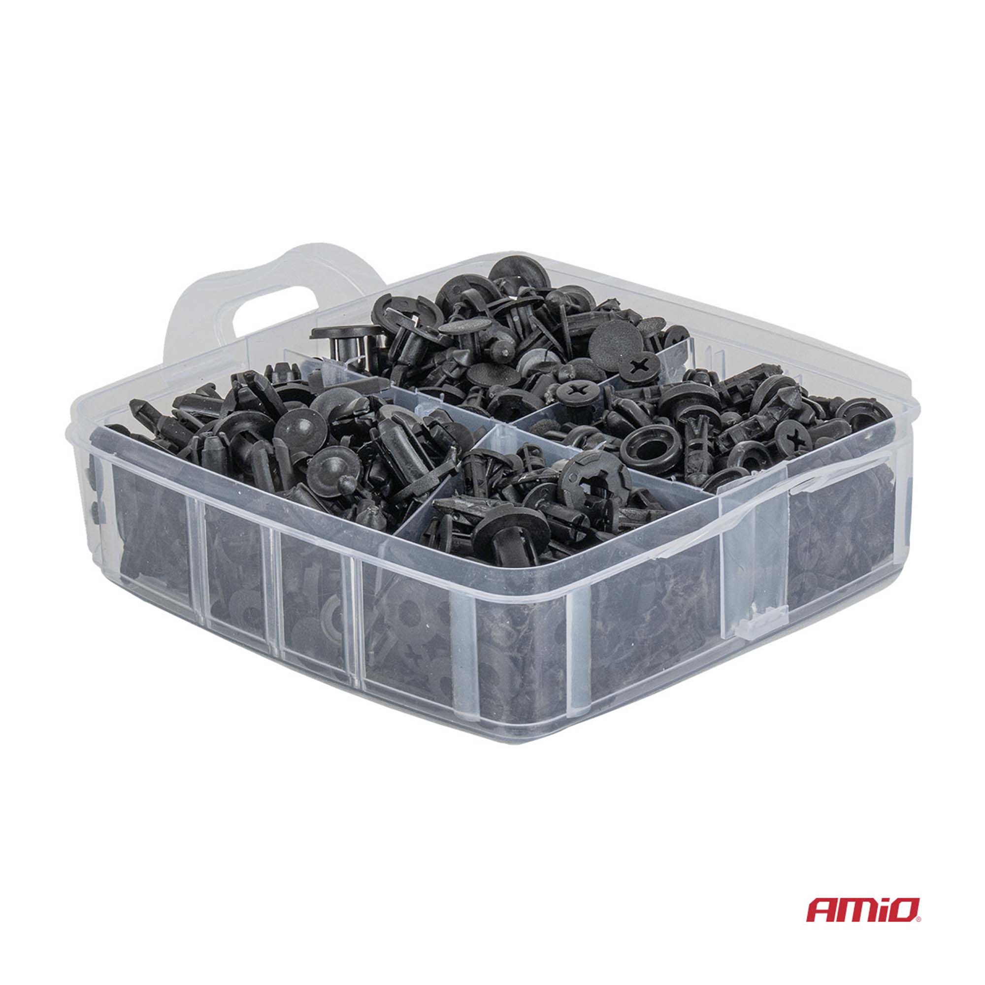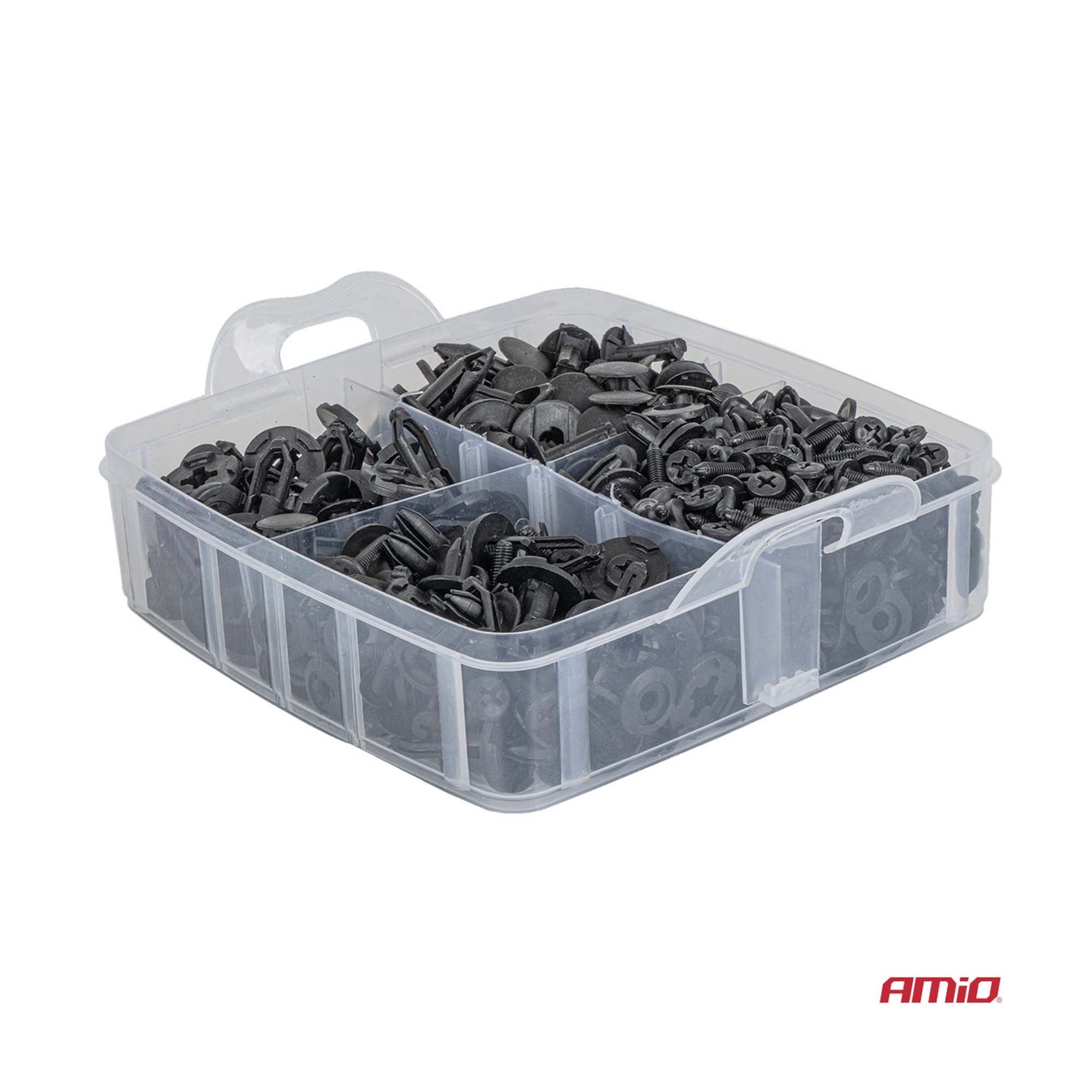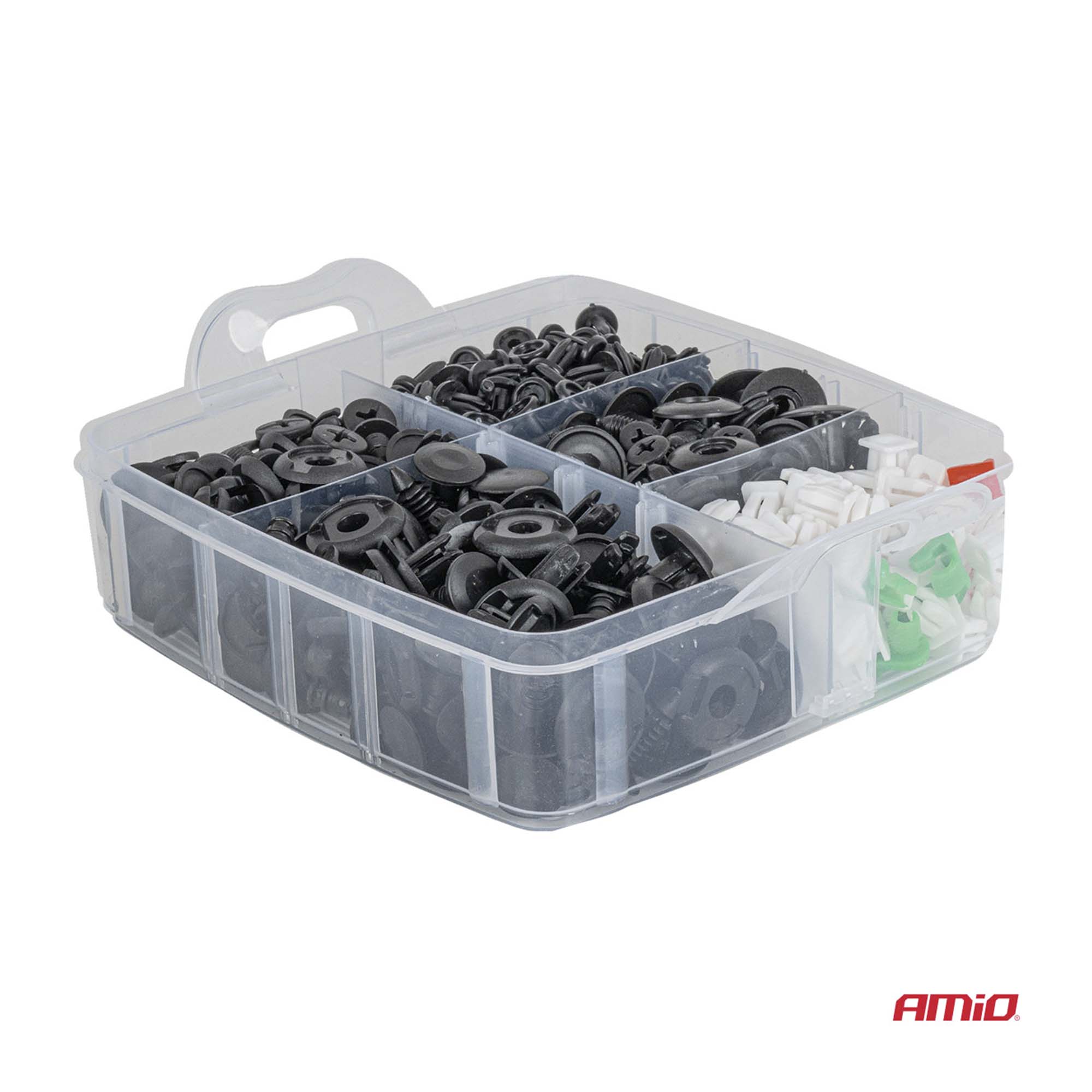 1211-osainen monipuolinen auton kiinnike- ja klipsisarja sisältää sekä kiinnikkeet että työkalut korin osien irrottamiseen ja asentamiseen. Sarja kattaa suuren määrän useita eri kiinnitystyyppejä.