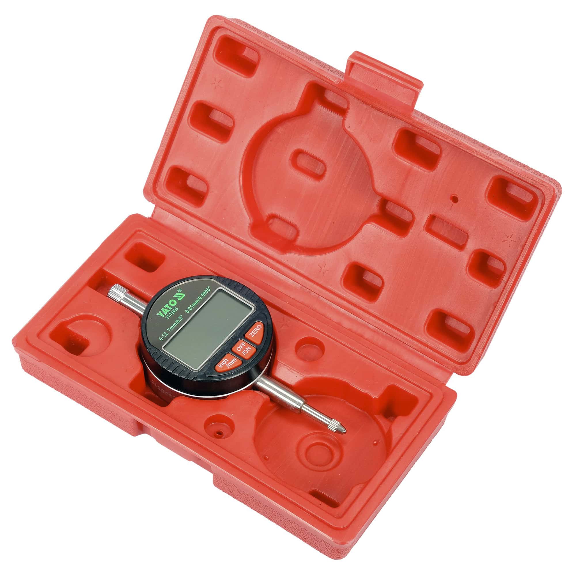 Yato digitaalinen heittokello / mittakello mittaa tarkasti 0–12,7 mm alueella, antaa mittaustuloksen 0,01 mm tarkkuudella. Sisältää 8 mm kiinnitystapin ja magneettialustan pyörivien osien heiton mittaukseen.