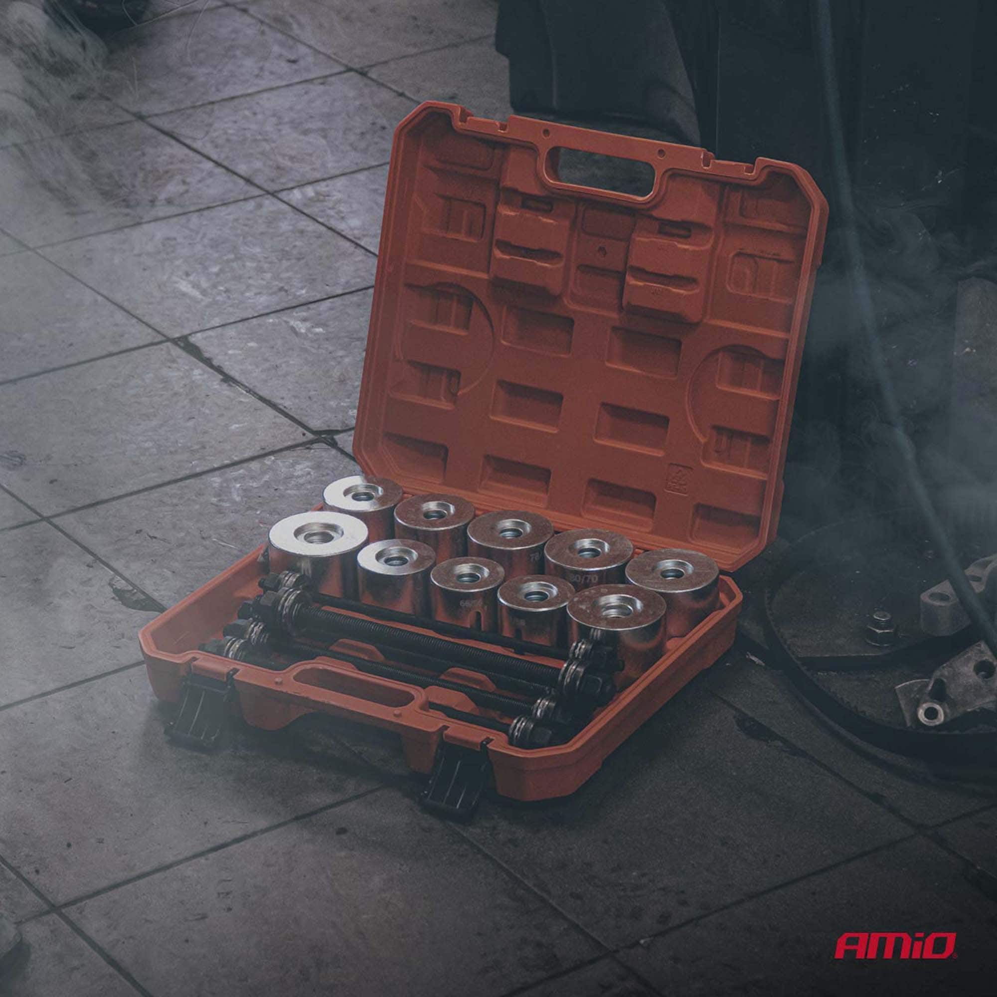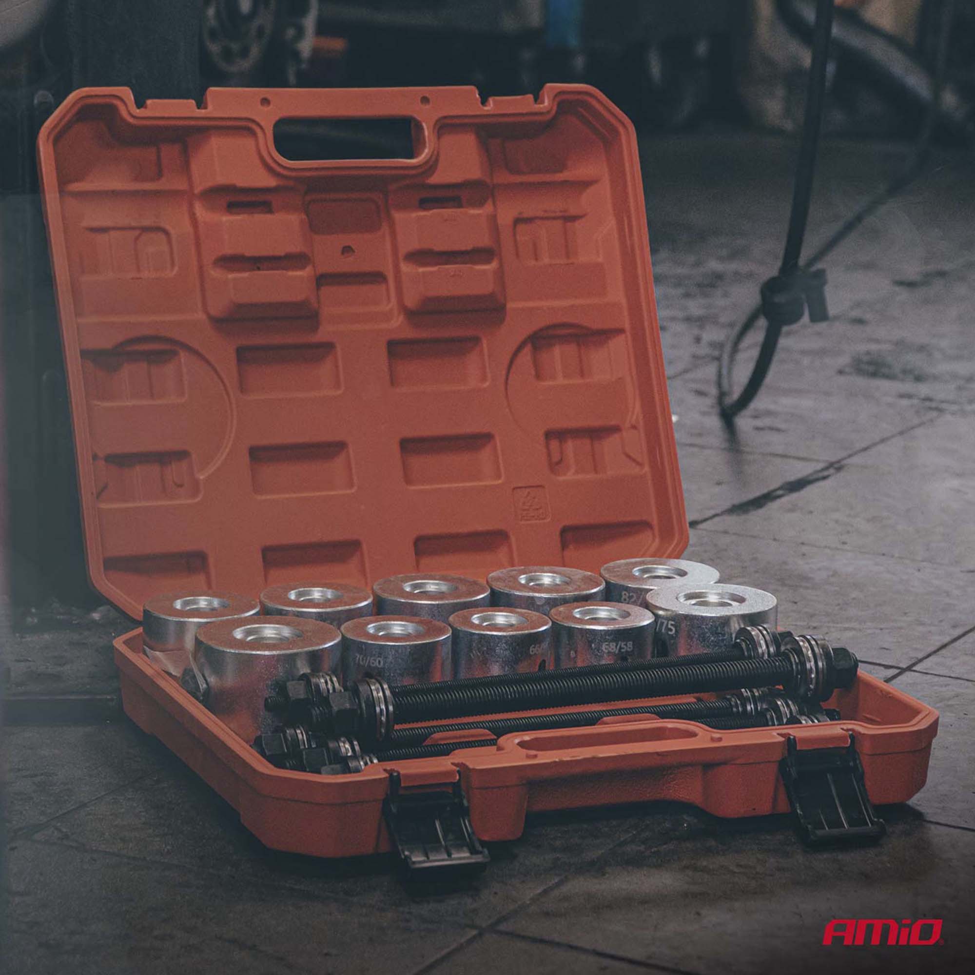 27-osainen holkkien ja laakerien irrotussarja, jonka avulla voidaan vaihtaa tukivarsien ja jousituksen holkkeja ilman, että koko tukivarsi tai akselipalkki tarvitsee irrottaa. Irroitussarja on tarkoitettu metalli-kumiholkkien (silentblock), hydraulisten laakerien, olkatappien holkkien sekä erilaisten tiivisteiden irrotukseen ja asennukseen.