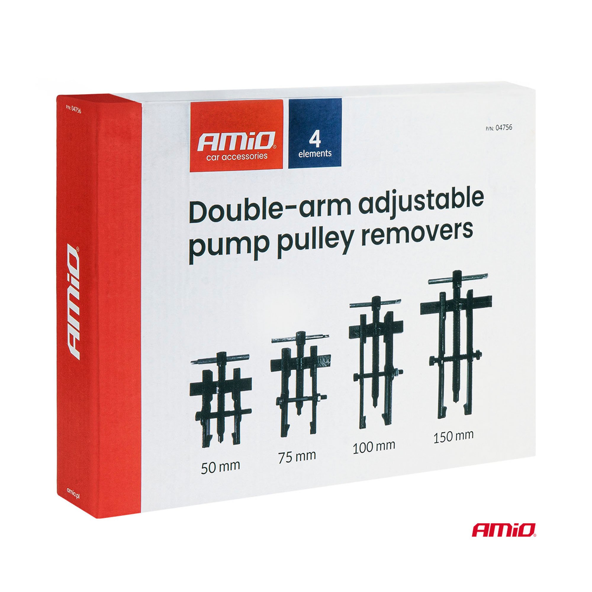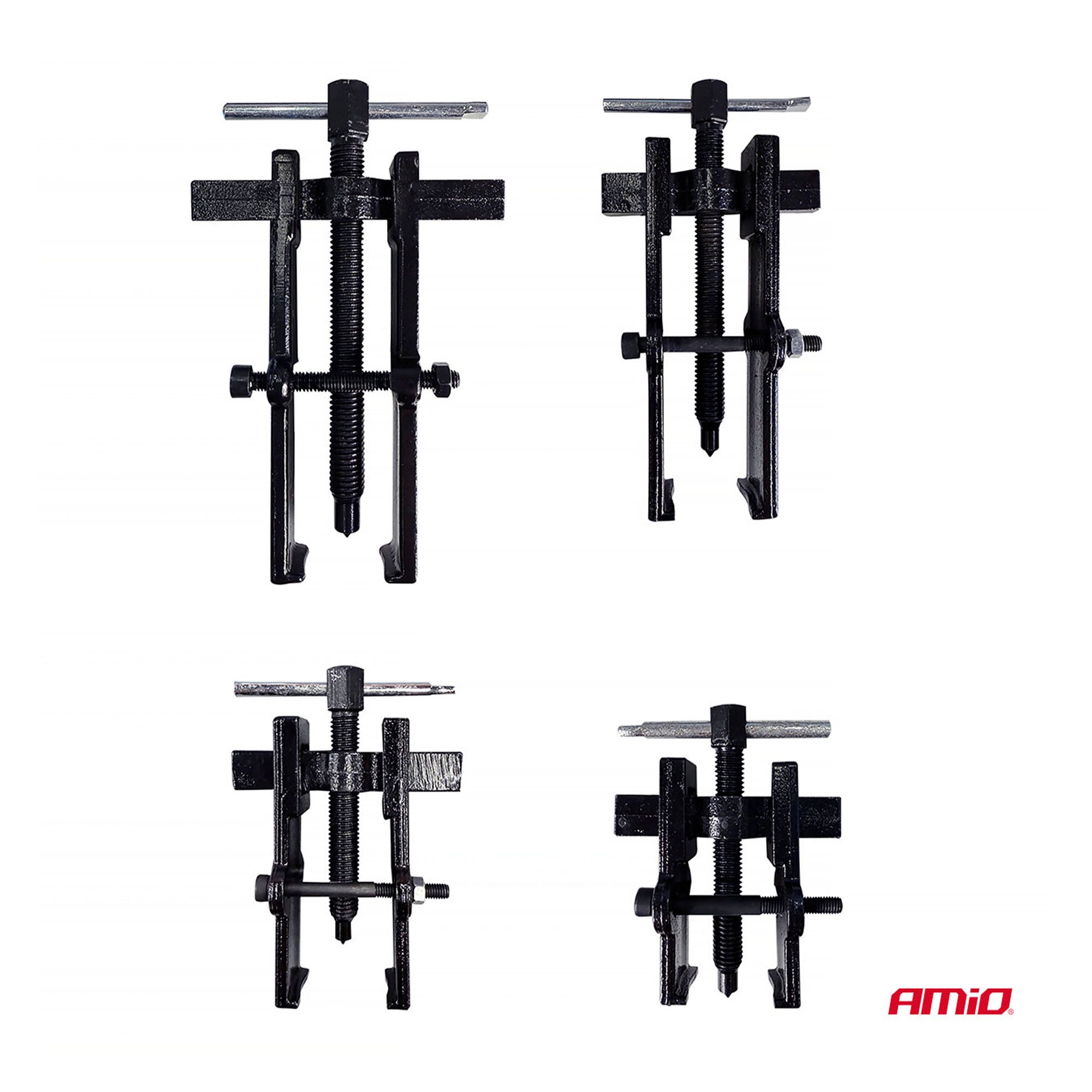 4-osainen Amio hihnapyörän ulosvetäjä on työkalu pumppujen hihnapyörien irrottamiseen henkilö- ja pakettiautoista. Kaksileukaiset ulosvetäjät sopivat eri halkaisijoille säädettävän rakenteen ansiosta.