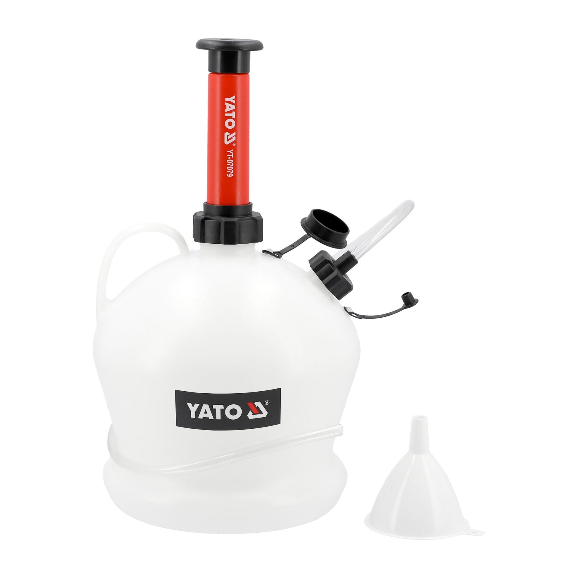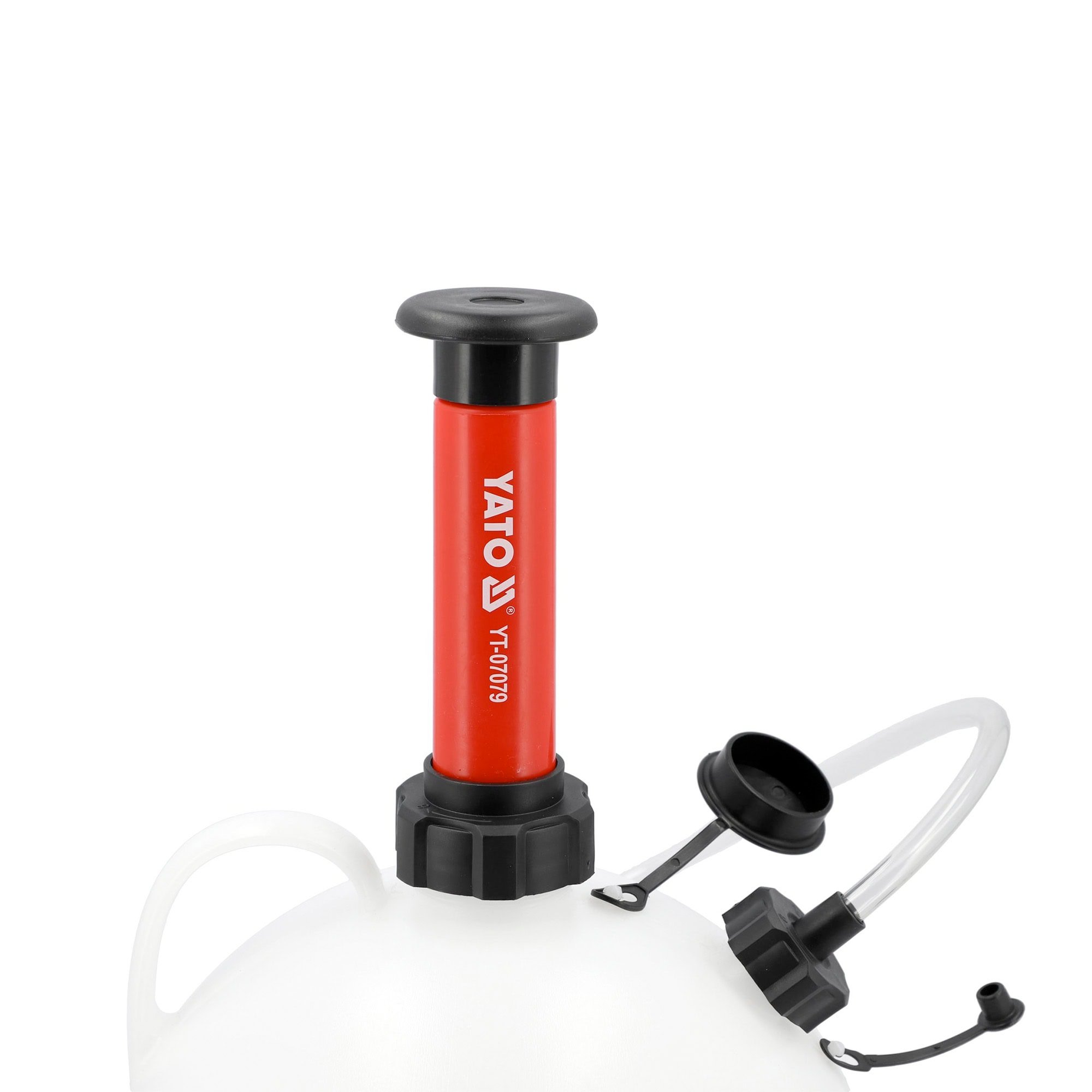 Yato 6 litran käsikäyttöinen imupumppu öljyn ja muiden huoltonesteiden poistamiseen tai lisäämiseen. Pumppu soveltuu moottoriöljylle, jäähdytysnesteelle, jarrunesteelle ja bensiinille.