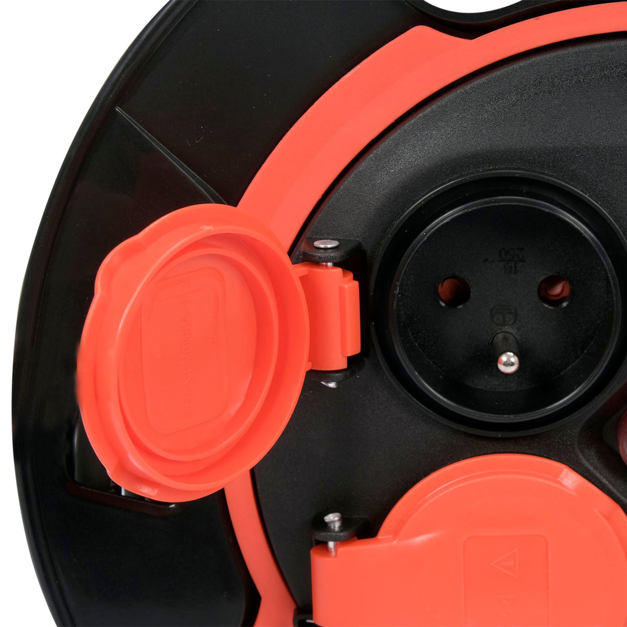 Rakennuskäyttöön suunniteltu kaapelikela, jossa on neljä pöly- ja roisketiivistä pistorasiaa, lämpösuoja sekä lapsisuoja. Luonnonkumipäällysteinen johto sopii sekä sisä- että ulkokäyttöön, esimerkiksi rakennustyömaille, puutarhoihin tai teollisuusalueiden pihoille.