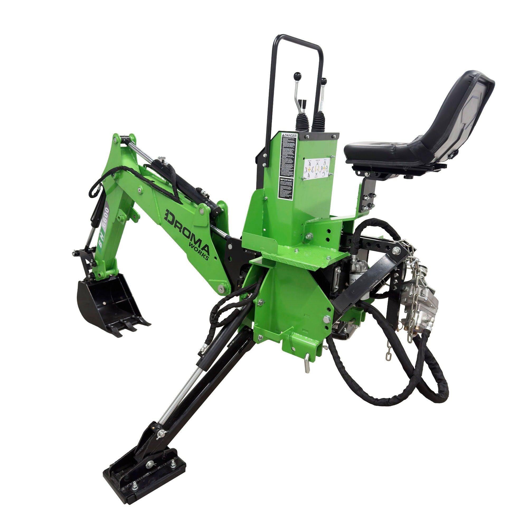 Droma Works traktorin kaivuulaite on monipuolinen ja tehokas työkalu ojien kaivamiseen, vesiväylien puhdistamiseen ja rakennus- sekä tieprojekteihin. Kompakti rakenne, 2133 mm maksimi kaivusyvyys ja helppo 3-pistekiinnitys tekevät siitä hyvän kaiken kokoisille traktoreille.