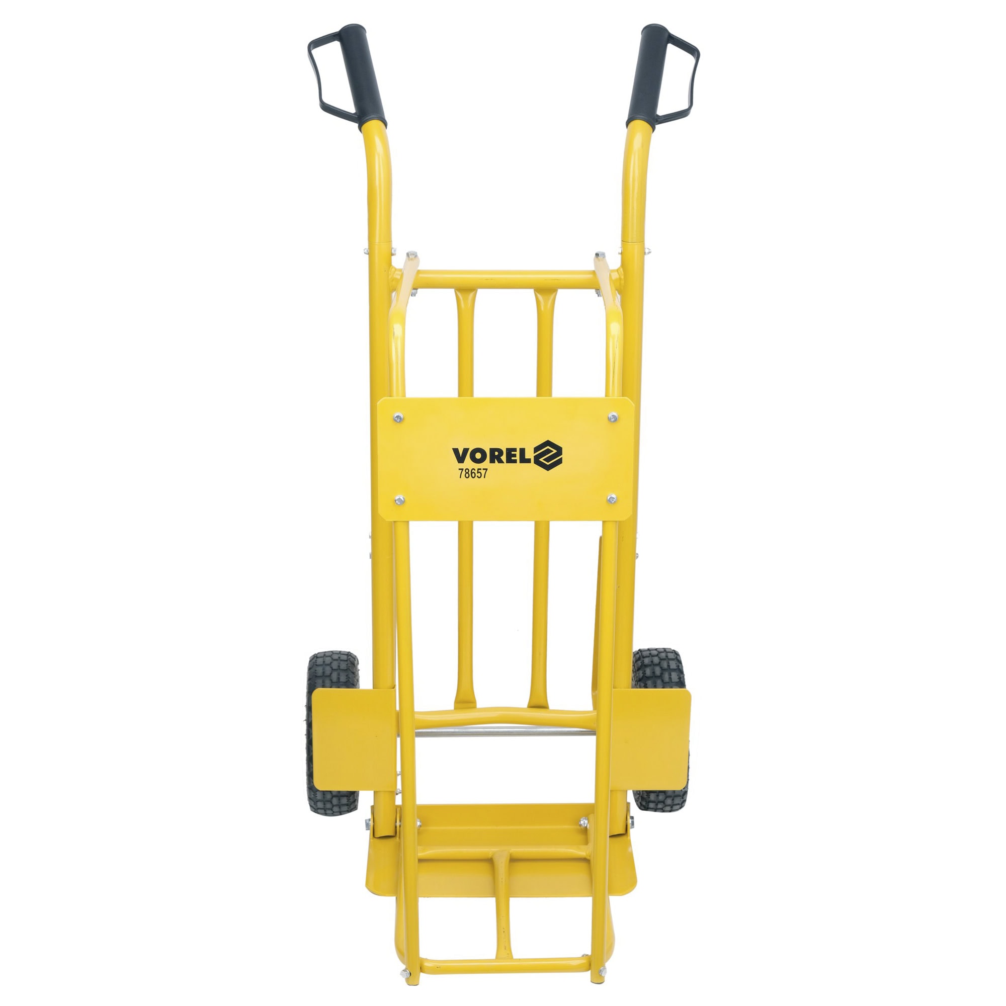 Kärryn runko on valmistettu lujasta teräksestä, jonka pintakäsittelynä on kestävä lakkaus. Vaunun kantavuus on jopa 200 kg, mikä mahdollistaa suurten ja painavien kuormien siirtämisen vaivattomasti. Lisäksi kompakti koko (1200 × 670 × 695 mm) helpottaa vaunun säilyttämistä ja kuljettamista.