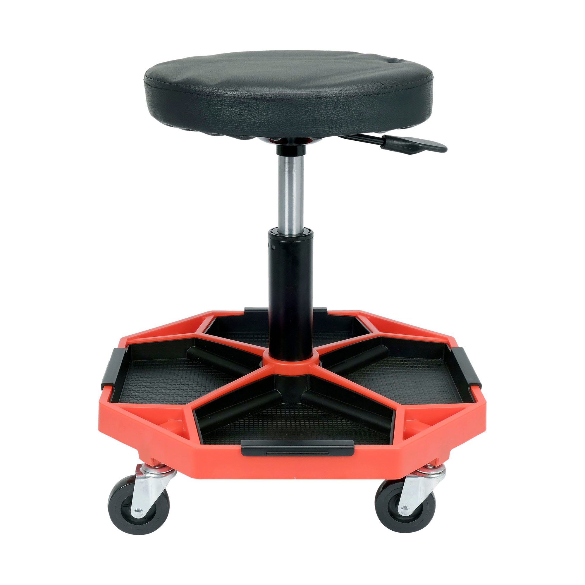Pyörivä verstastuoli, jossa on lokerot pienten tarvikkeiden ja työkalujen säilytykseen. Istuinkorkeus on säädettävissä välillä 41–55 cm. Istuin on pehmustettu vaahtomuovilla ja päällystetty pehmeällä vinyylillä, joka kestää rasvaa ja öljyä. Kestävä teräsrunko takaa pitkän käyttöiän, ja neljä kääntyvää pyörää mahdollistavat vaivattoman liikkumisen työpisteessä. Soveltuu erinomaisesti korjaamoihin ja verstaisiin.
