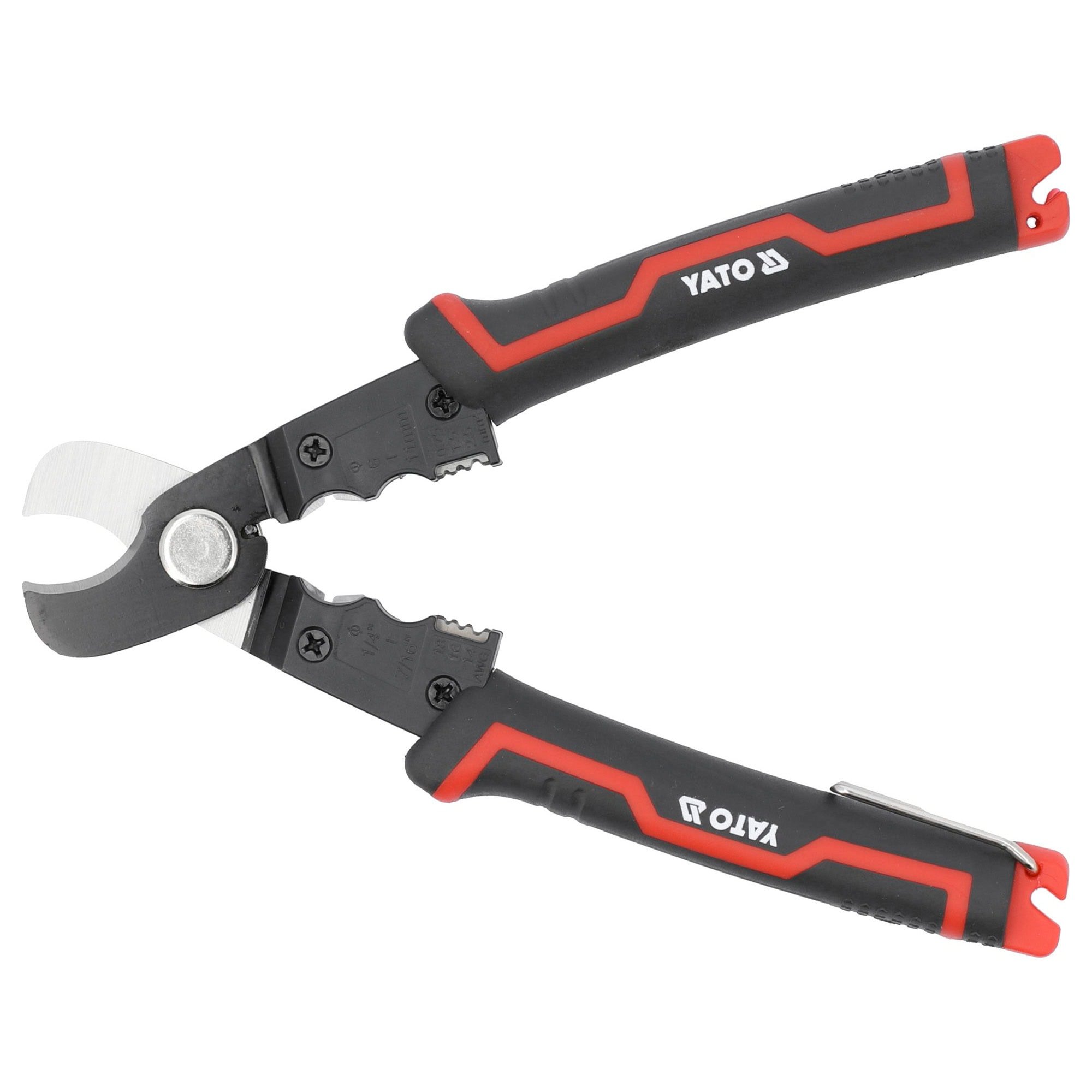 Leikkuuterän paksuus on 3 mm, ja se mahdollistaa tarkan leikkuun eri johdin tyypeille. Kahvat on valmistettu TPR- ja PP-muovist. Palautusjousi on sijoitettu niitin sisään. Lukitustoiminto parantaa turvallisuutta ja helpottaa pihtien säilytystä.