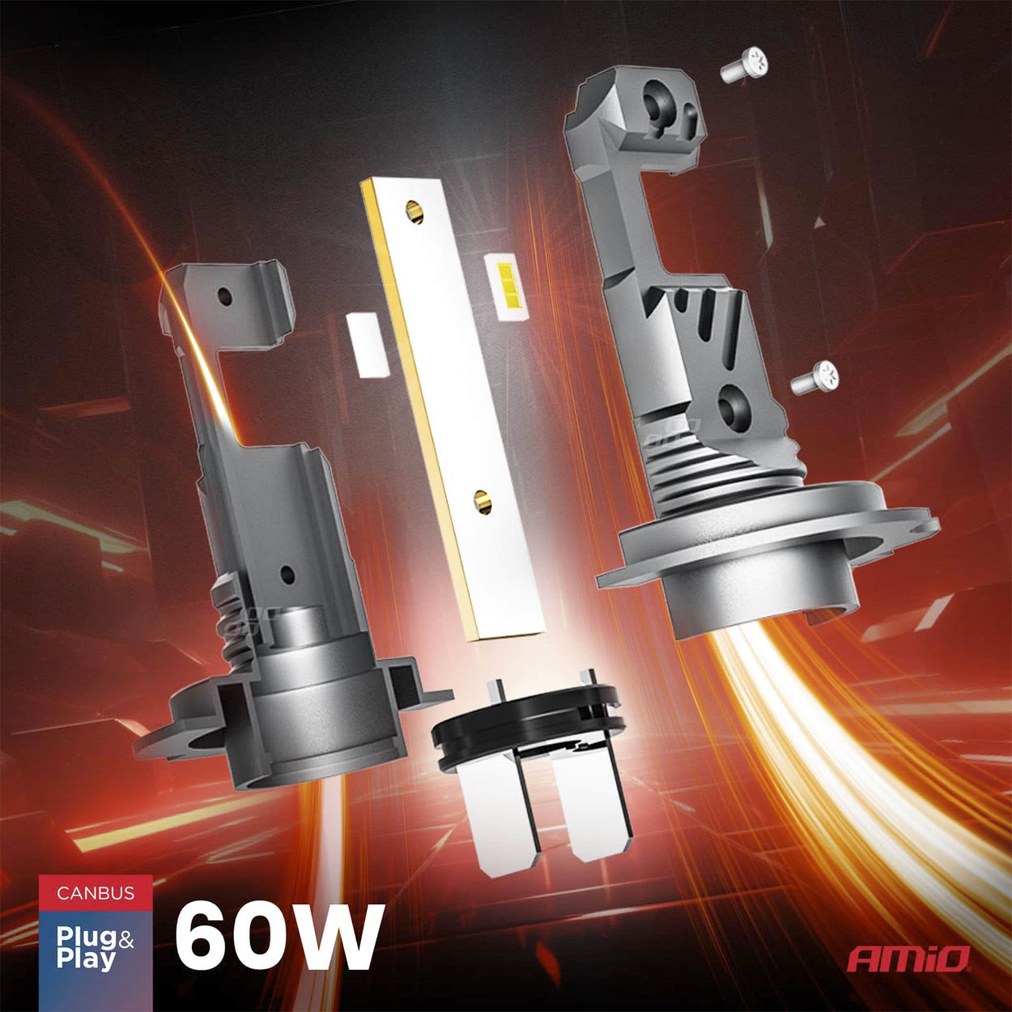 LED-ajovalopolttimot H7/H18 CANBUS 5600lm, Amio LED-ajovalopolttimot H7/H18 CANBUS 5600lm, Amio
