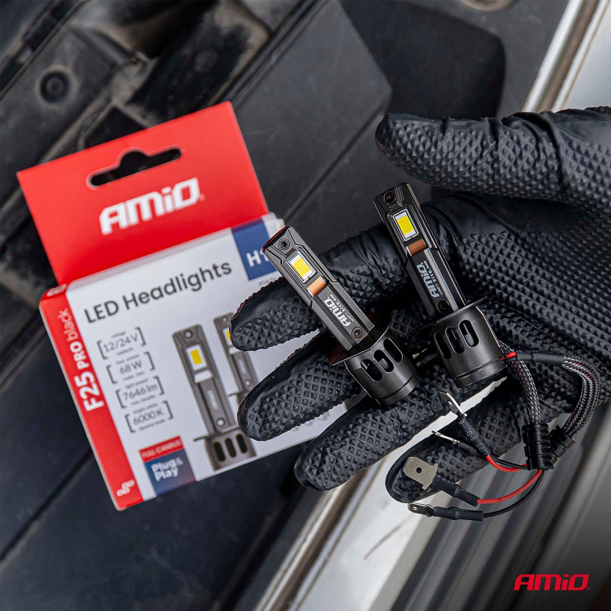 Amio pro black edition H1 LED-ajovalopolttimot FULL CANBUS -yhteensopivuudella. Polttimot tuottavat kirkkaan 6000 K valkoisen valon ja parantavat näkyvyyttä sekä ajoturvallisuutta ilman vikailmoituksia.