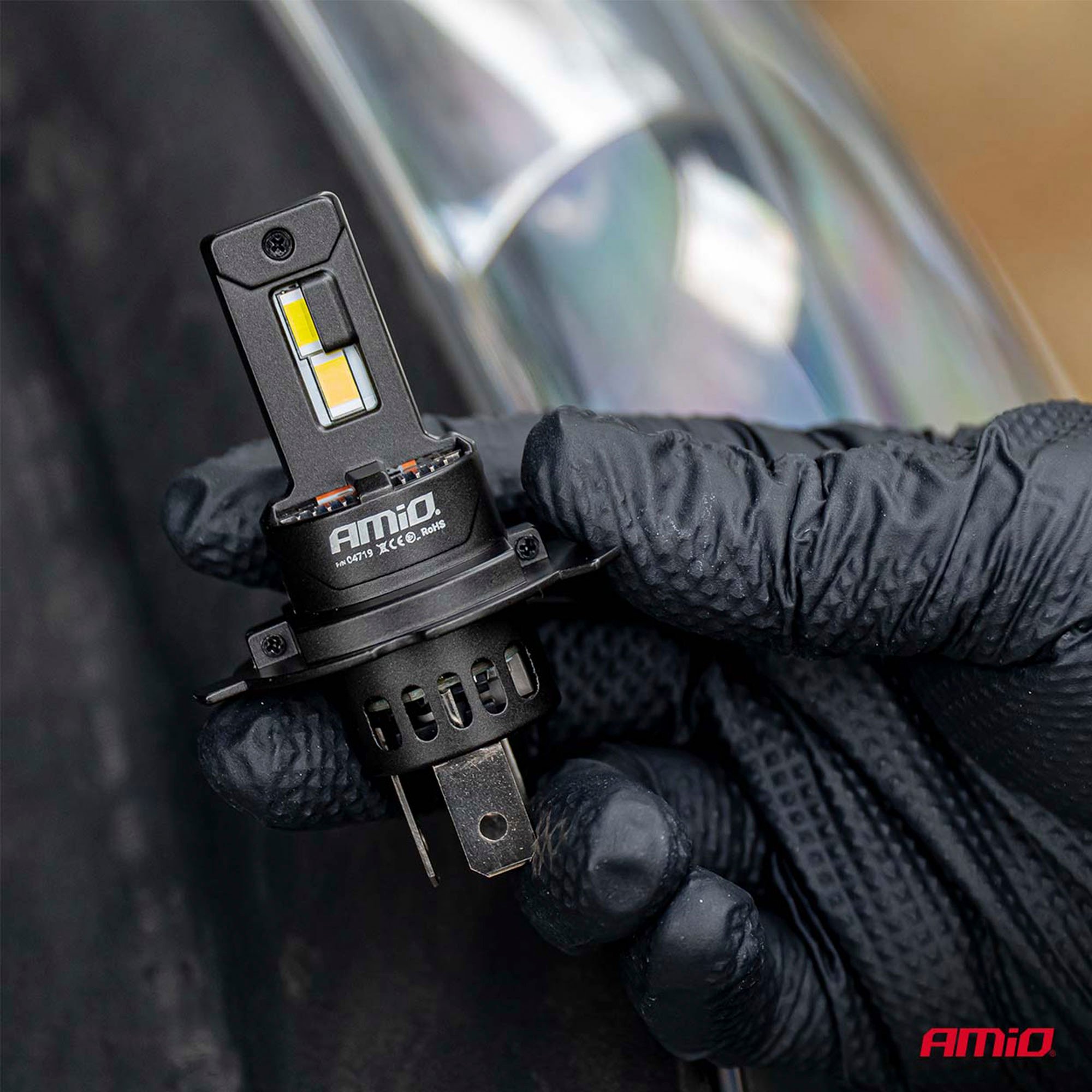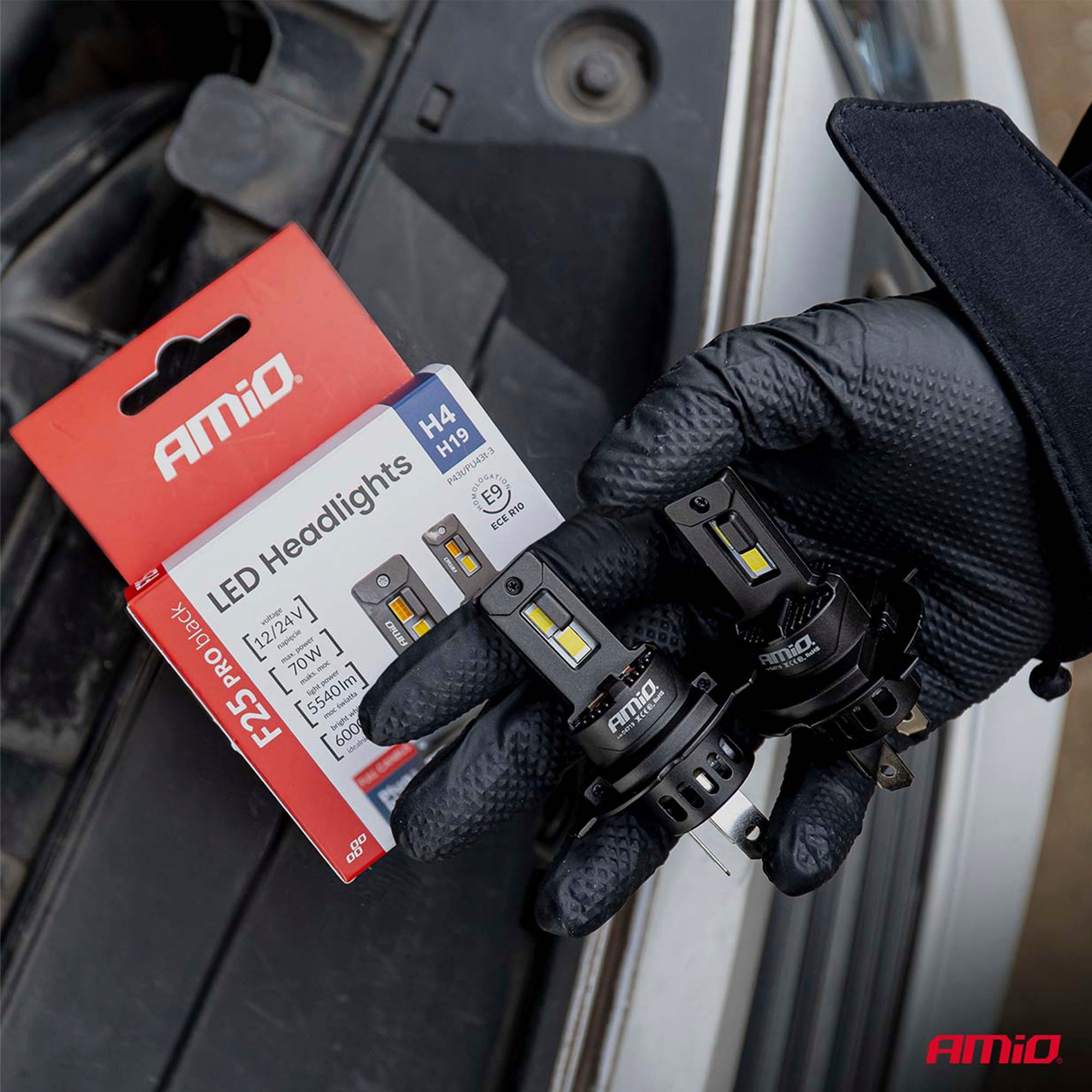 Amio F25 PRO BLACK H4/H19 LED-ajovalopolttimot antavat kirkkaan 6000 K valkoisen valon, tehokkaan 70 W suorituskyvyn ja täyden CANBUS-yhteensopivuuden.