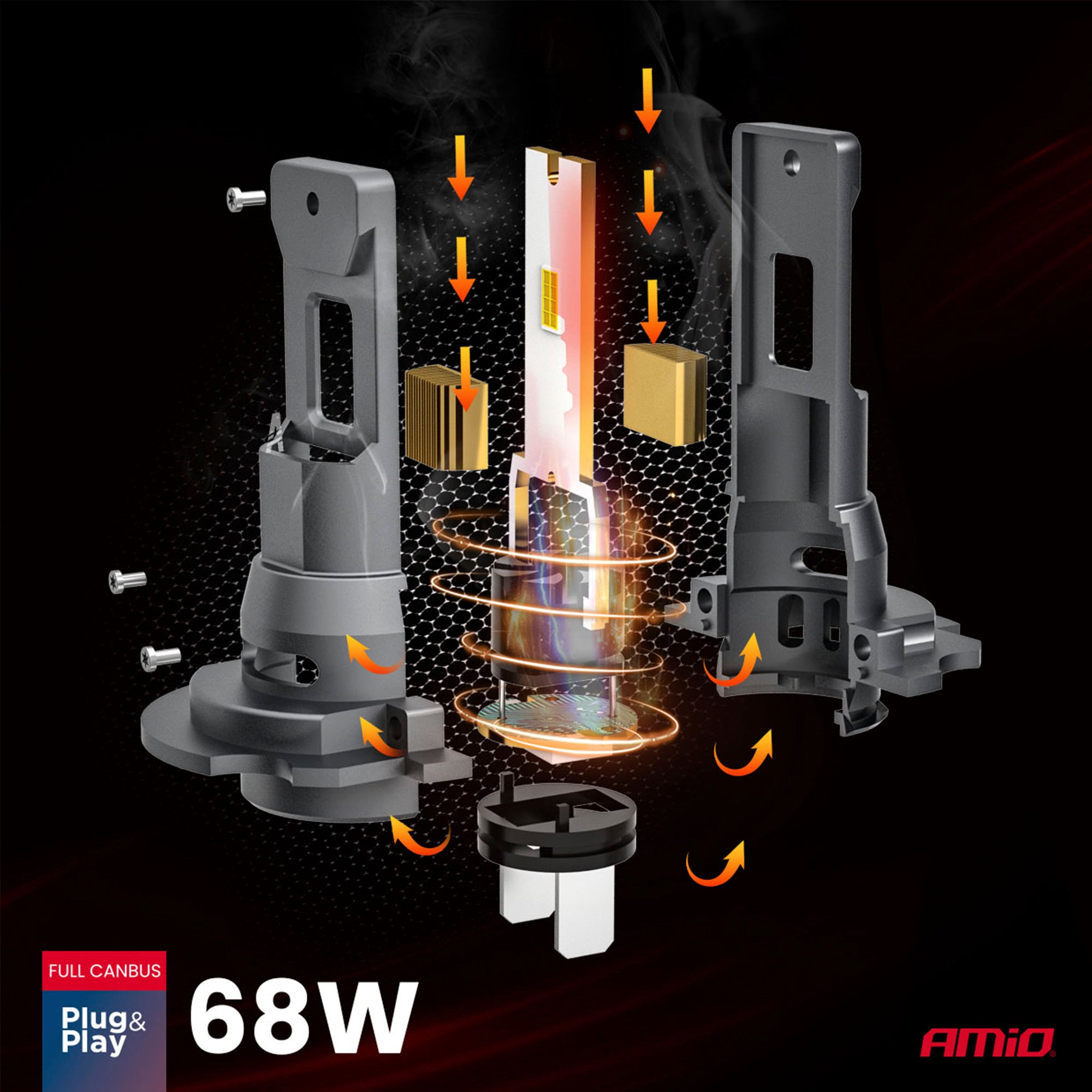 LED-ajovalopolttimot PRO H7 68W 7646lm, Amio
