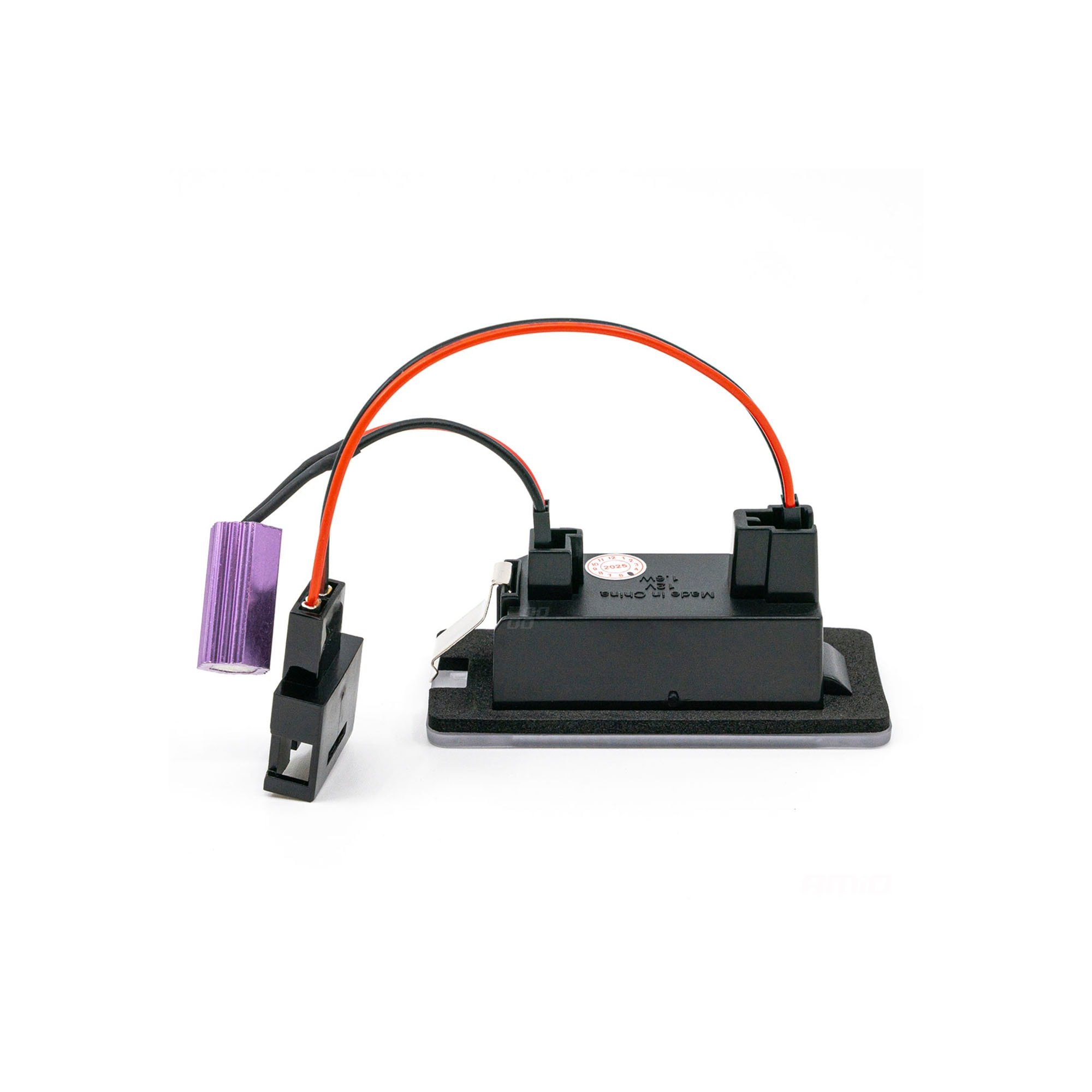 Amio CLP03 -LED-rekisterikilven valo, joka antaa modernin valoratkaisun alkuperäisten OEM-valojen korvaamiseen VAG-ajoneuvoissa. Valo hyödyntää tehokasta LED-teknologiaa, joka takaa kirkkaan ja tasaisen valaistuksen, varmistaen rekisterikilven erinomaisen näkyvyyden niin päivällä kuin yöllä. LED-valot kuluttavat vähän energiaa, kestävät pitkään ja säilyttävät vakaan valon värin koko käyttöikänsä ajan. Iskunkestävä ja säänpitävä kotelo varmistaa, että valot toimivat luotettavasti myös vaativissa olosuhteissa. Plug & Play -asennus tekee vaihtamisesta nopeaa ja helppoa ilman erikoistyökaluja, ja CANBUS-yhteensopivuus estää virheilmoitusten ilmestymisen auton tietojärjestelmään.