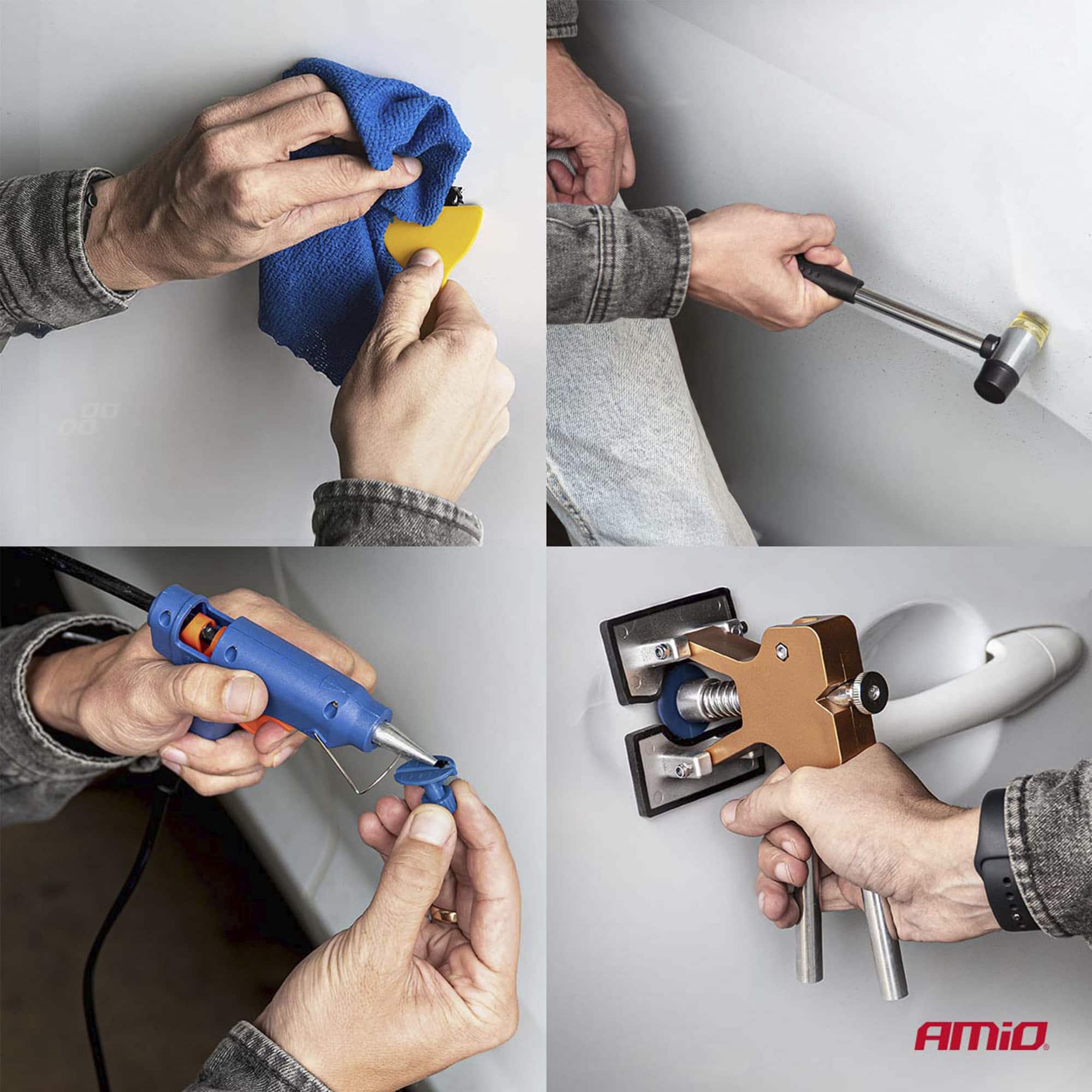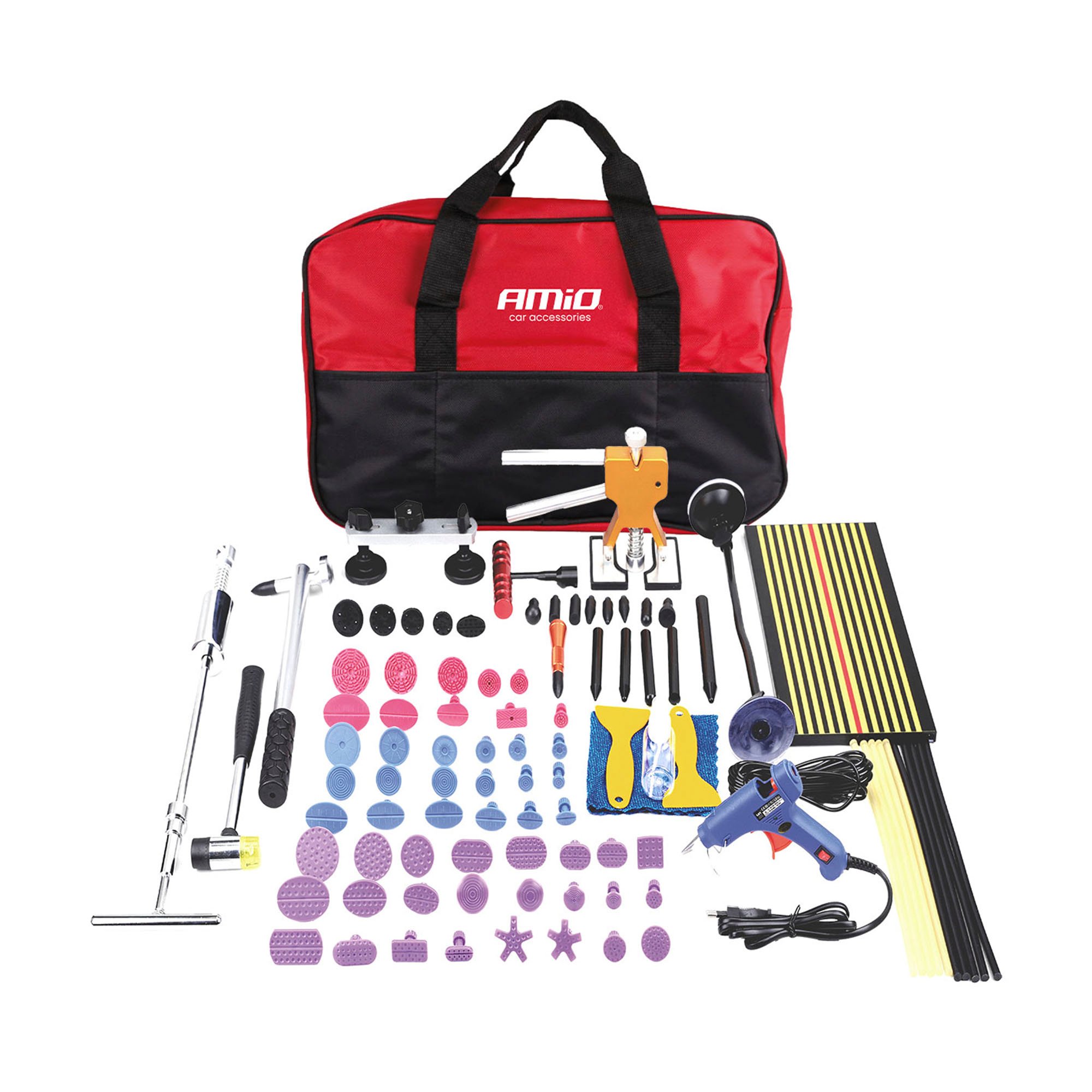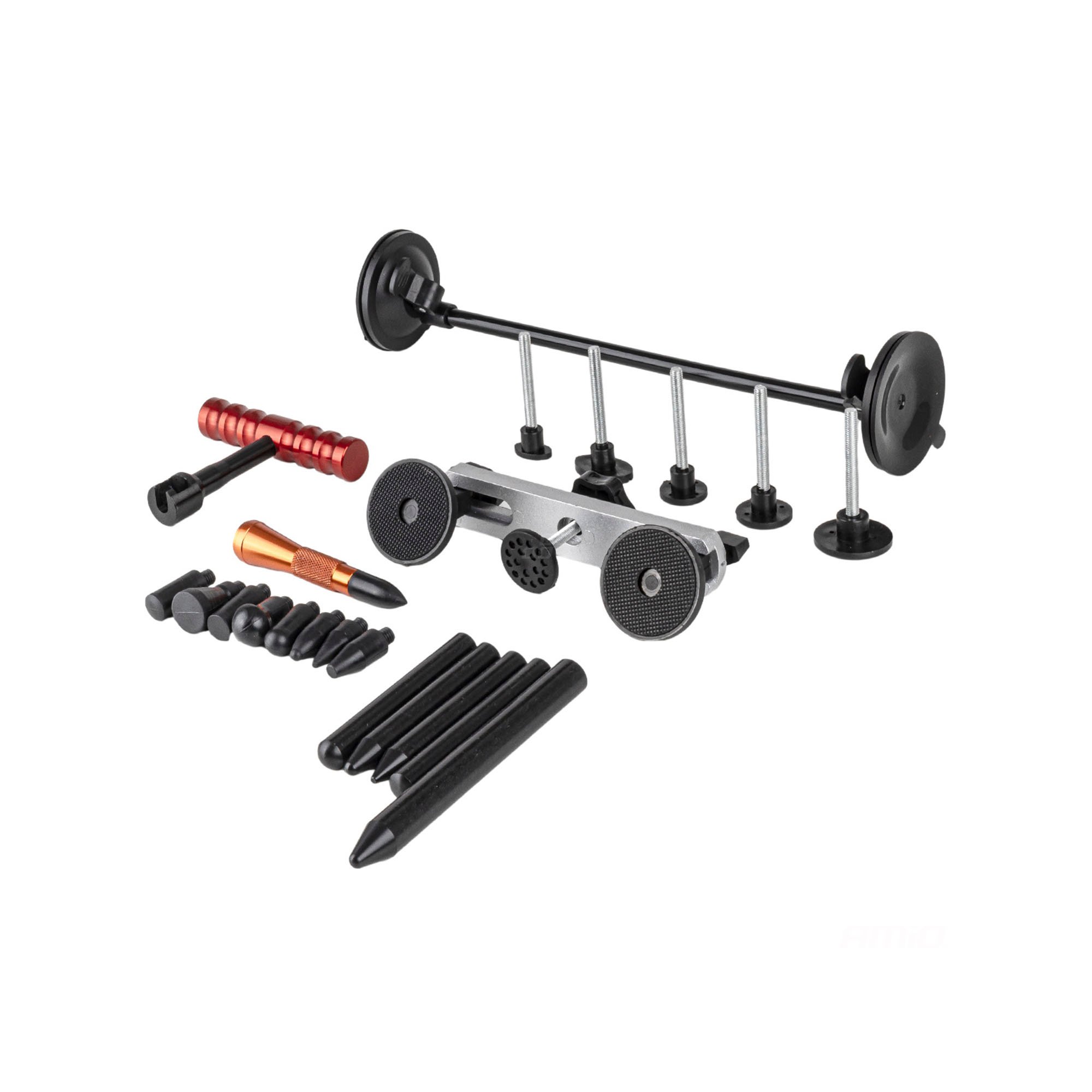 PDR-lommonoikaisusarja auton koripeltien lommojen ja painaumien poistamiseen ilman maalausta. Korjaus menetelmä säilyttää auton alkuperäisen maalipinnan. Monipuolinen valikoima erilaisia vasaroita sekä lisävarusteita mahdollistaa erilaisten lommojen korjaamisen. Sarja toimitetaan kätevässä säilytyslaukkussa, joka pitää työkalut järjestyksessä ja helposti mukana missä tahansa.