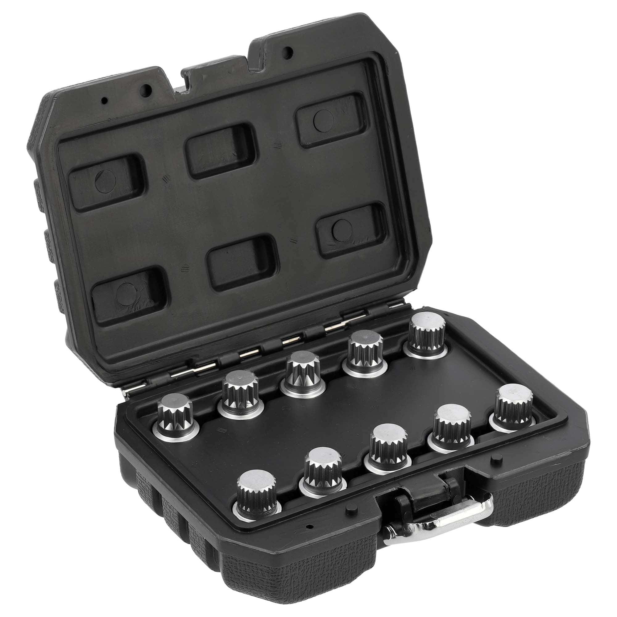 Yato lukkopultti avainsarja VAG-konsernin ajoneuvoille. Sarja sisältää 10 erilaista hylsyä pyöränpulttien avaamiseen ja kiristämiseen.