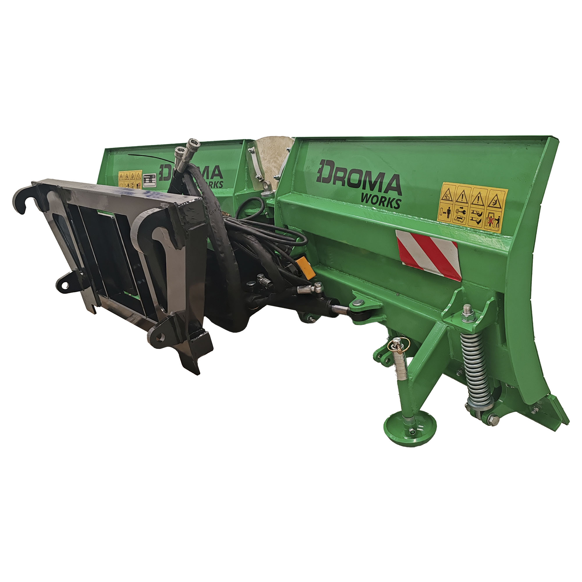 22200 mm leveä Droma Works nivelaura EURO sovitteella on suunniteltu erityisesti tehokkaaseen lumen poistoon traktoreilla, pyöräkuormaajilla ja muilla työkoneilla. Lumiaura soveltuu erinomaisesti kaupunki- ja taajama-alueiden, kevyen liikenteen väylien sekä piha-alueiden lumitöihin.