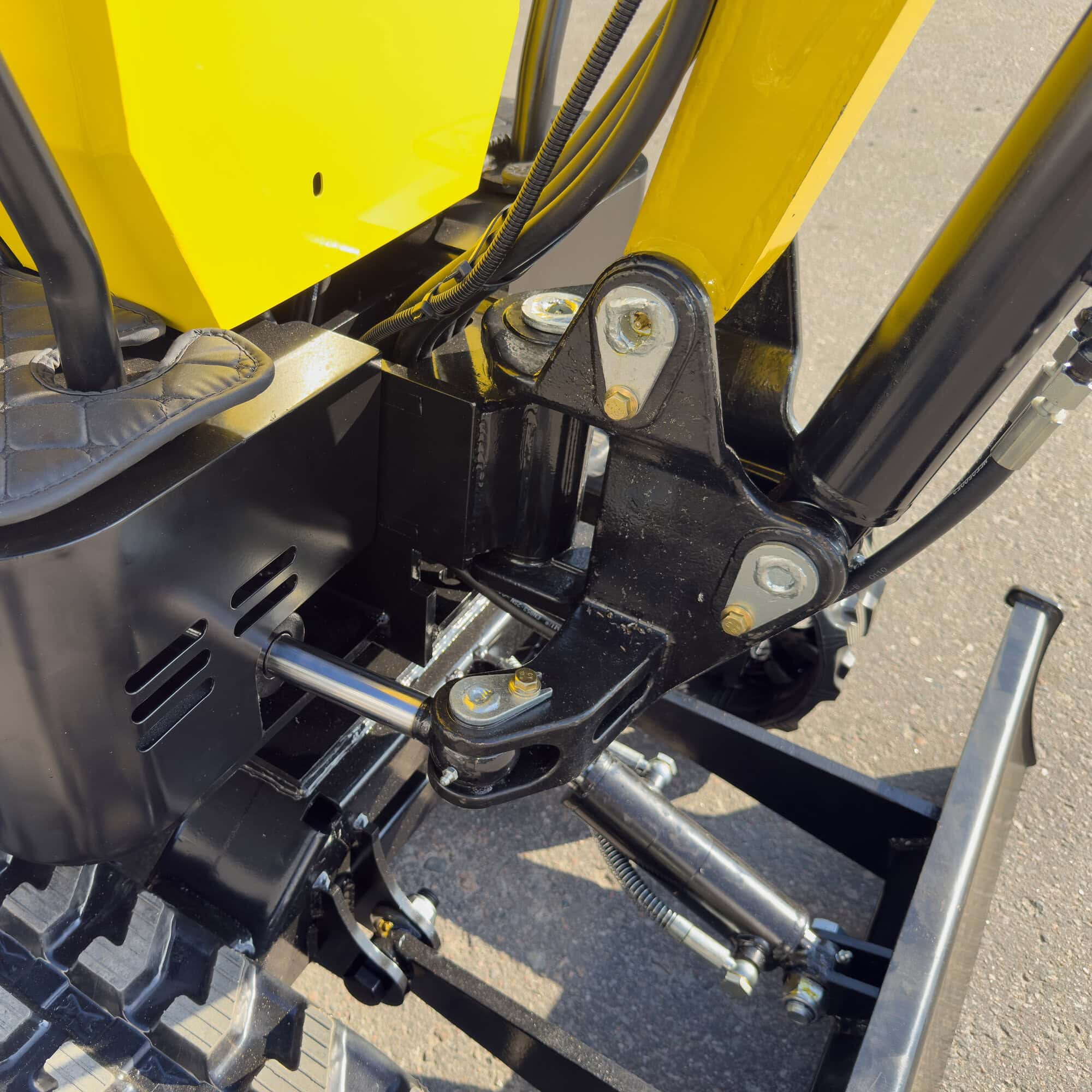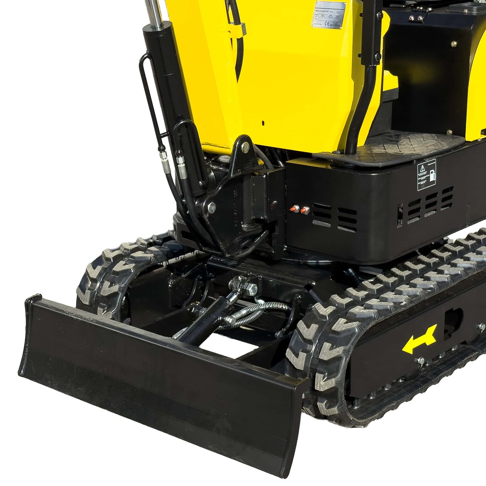 Minikaivuri on varustettu täyskumiteloilla, jotka tarjoavat erinomaisen pidon ja vähentävät pintavaurioita esimerkiksi piha-alueilla ja muilla herkillä alustoilla. Kumitelat takaavat myös hiljaisemman ja miellyttävämmän ajokokemuksen pehmeillä alustoilla. Lisäksi puskulevy tuo lisäarvoa helpottamalla maansiirtoa ja maan tasoitusta.