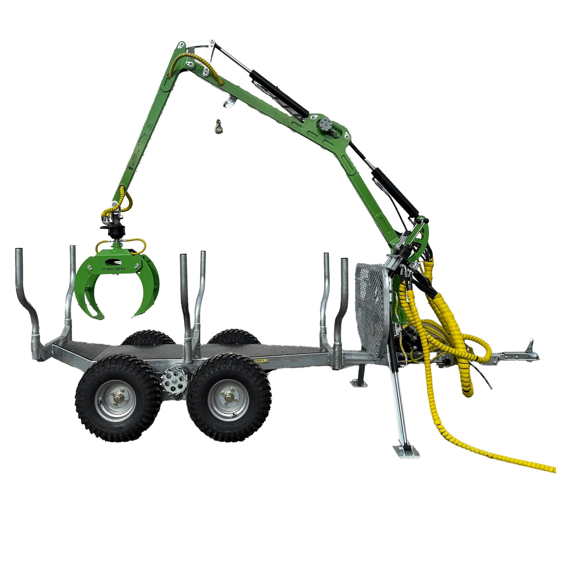 Hydraulinen mönkijän tukkikärry, jolla saat tehostettua puiden käsittelyä, kuljetusta sekä nostoa. Kärryssä on 9 hevosvoiman sähkö- ja vetokäynnisteinen moottori, jossa on säädettävä kierrosnopeus (1400–3800 rpm).
