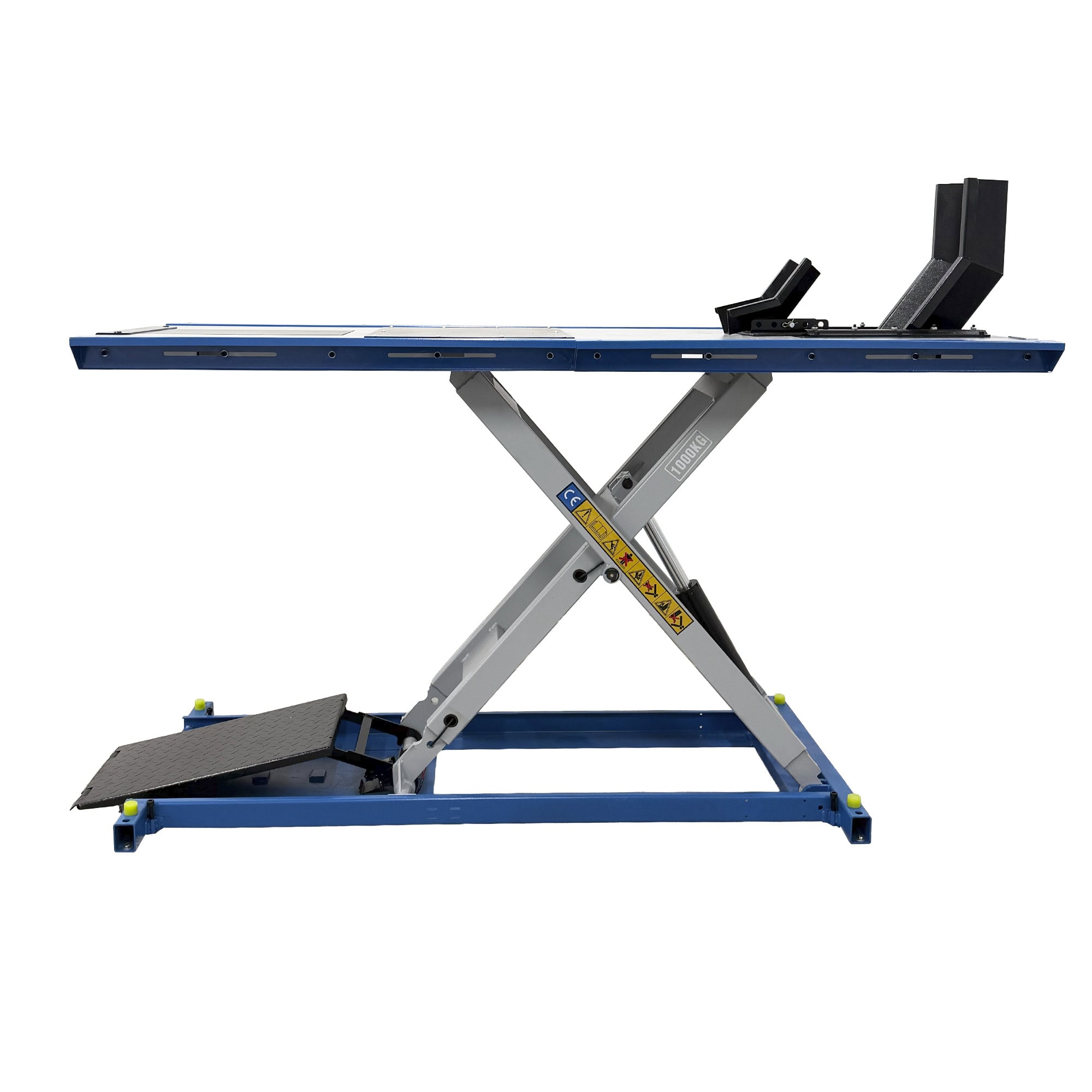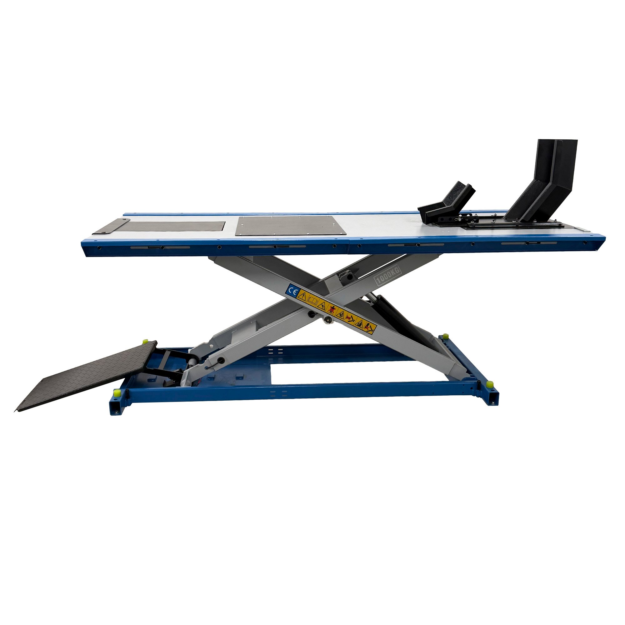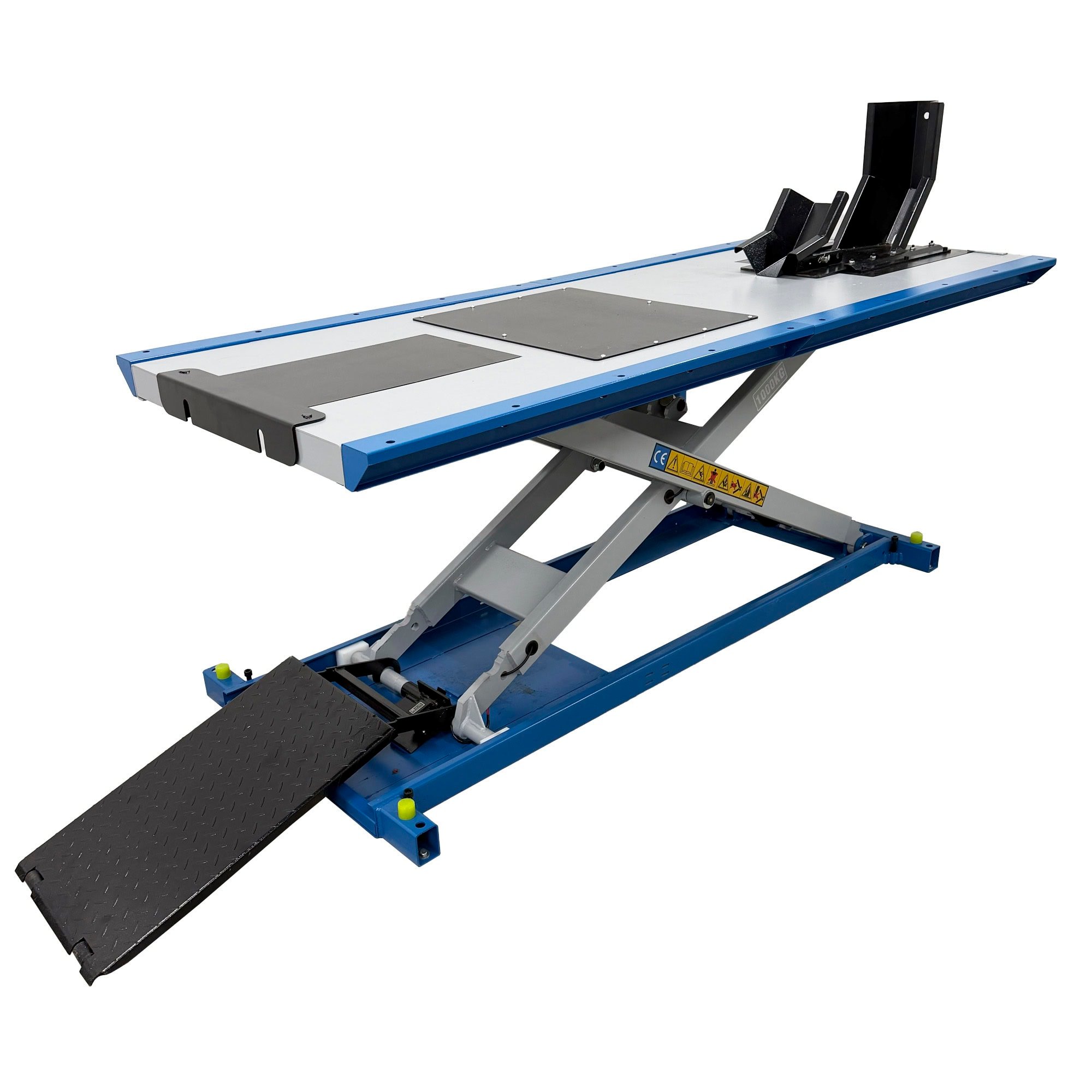 Moottoripyöränostin, joka on suunniteltu erityisesti raskaille moottoripyörille ja/tai matalalle maavaralle. Se on täysin sähköinen ja varustettu omalla hydraulimoottorilla, paineilmaa ei tarvita!