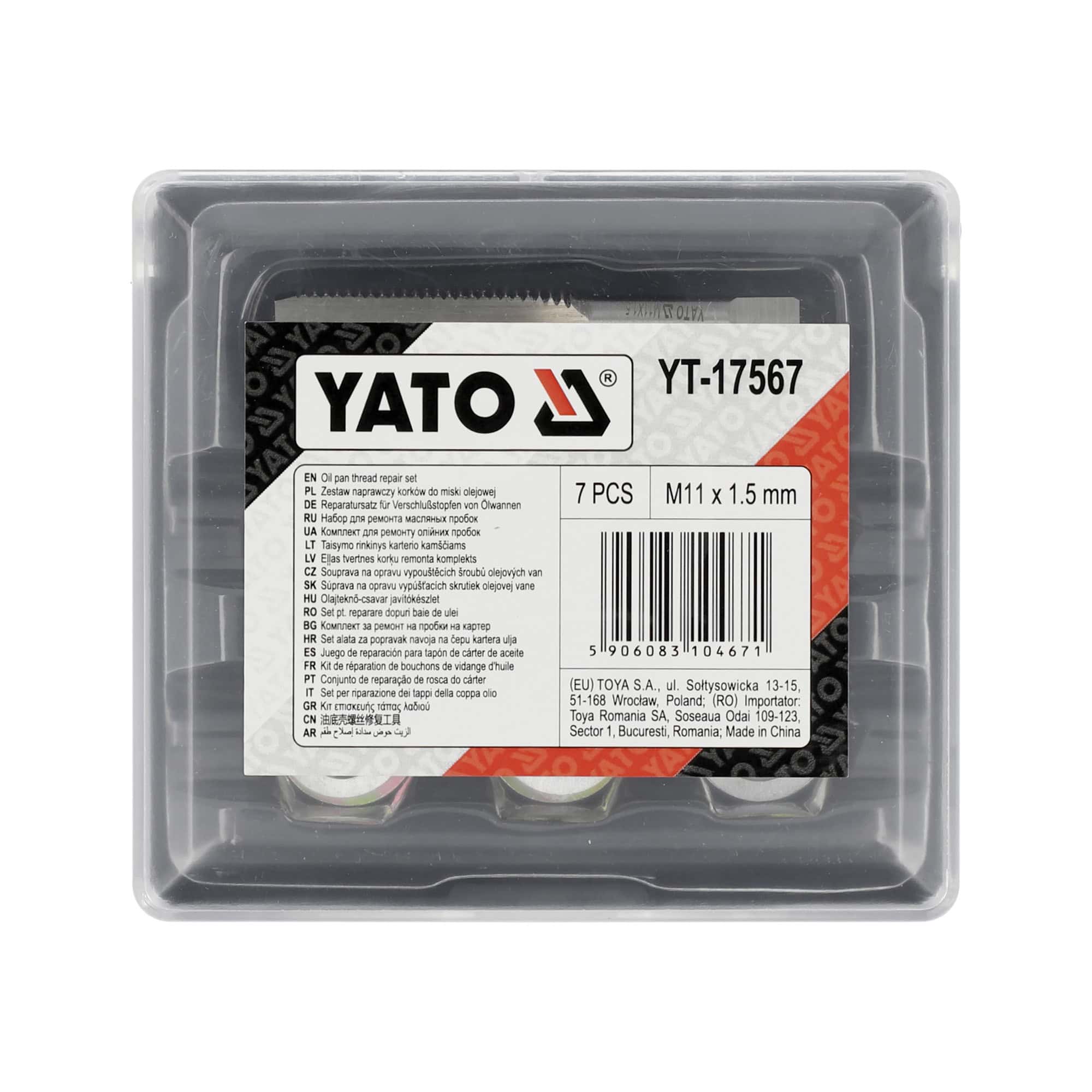 Nykyinen hinta on: 6,30 €.Yato M11 x 1,5 öljypropun kierteen korjaussarja mahdollistaa vaurioituneiden tyhjennystulppien kierteiden korjauksen kuuden tulpan ja alumiiniprikkojen avulla.