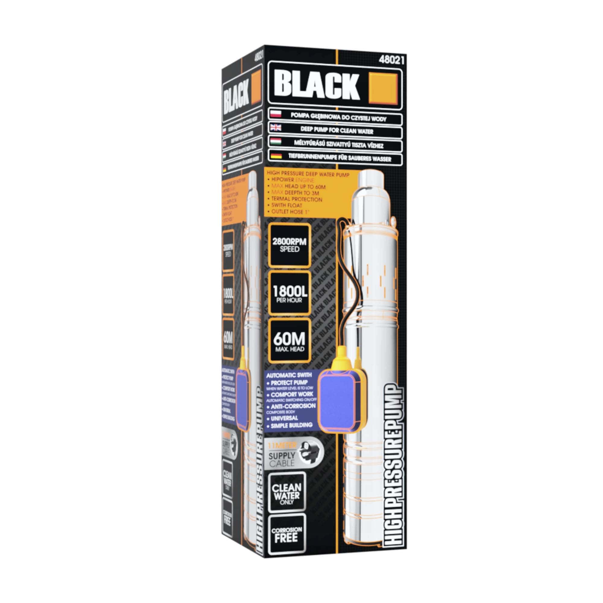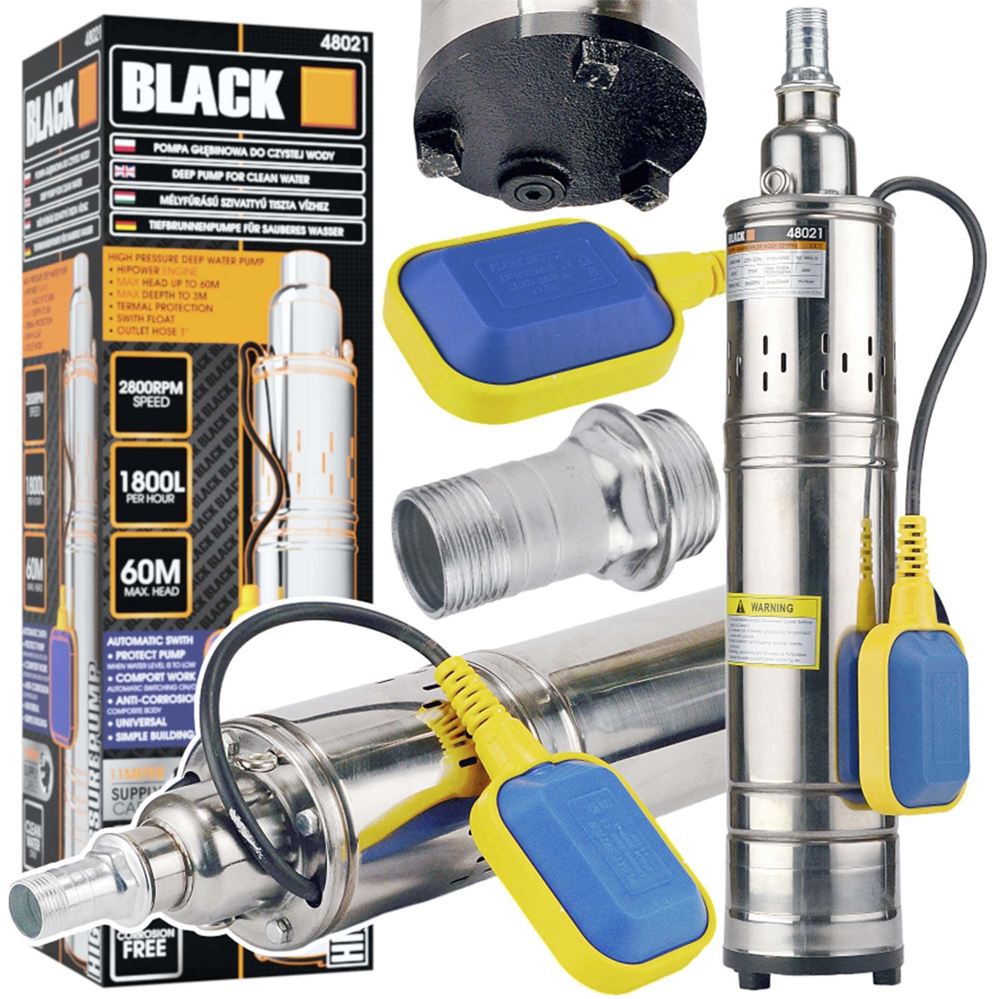 Black suurpaine uppopumppu / porakaivopumppu puhtaalle vedelle. Pumpulla voi nostaa vettä jopa 60 metrin nostokorkeuteen 1800 l/h teholla.