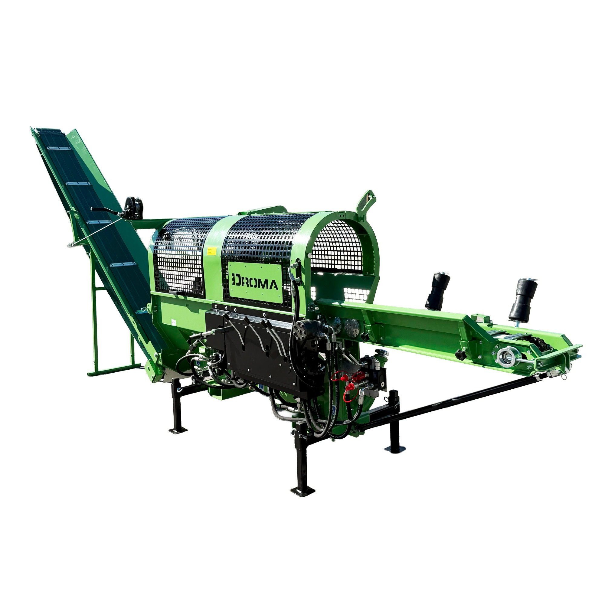 12 T Droma Wood klapikone kuljetushihnalla (PTO) on erinomainen valinta polttopuiden valmistukseen, tarjoten tehokkuutta, turvallisuutta ja monipuolisuutta pienille traktoreille.
