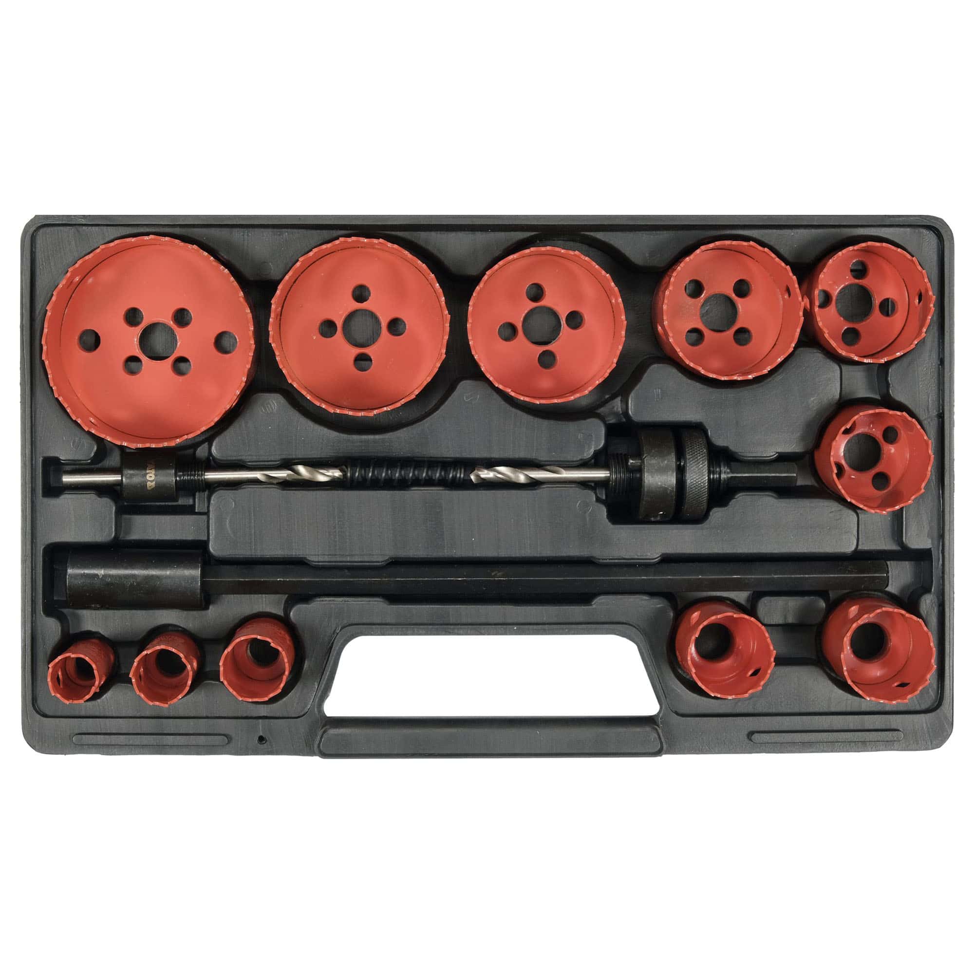 15-osainen reikäsahasarja metallin, ohutlevyn ja putkien poraamiseen. Soveltuu erinomaisesti myös muoveille, kalustelevyille ja hartsimateriaaleille.
