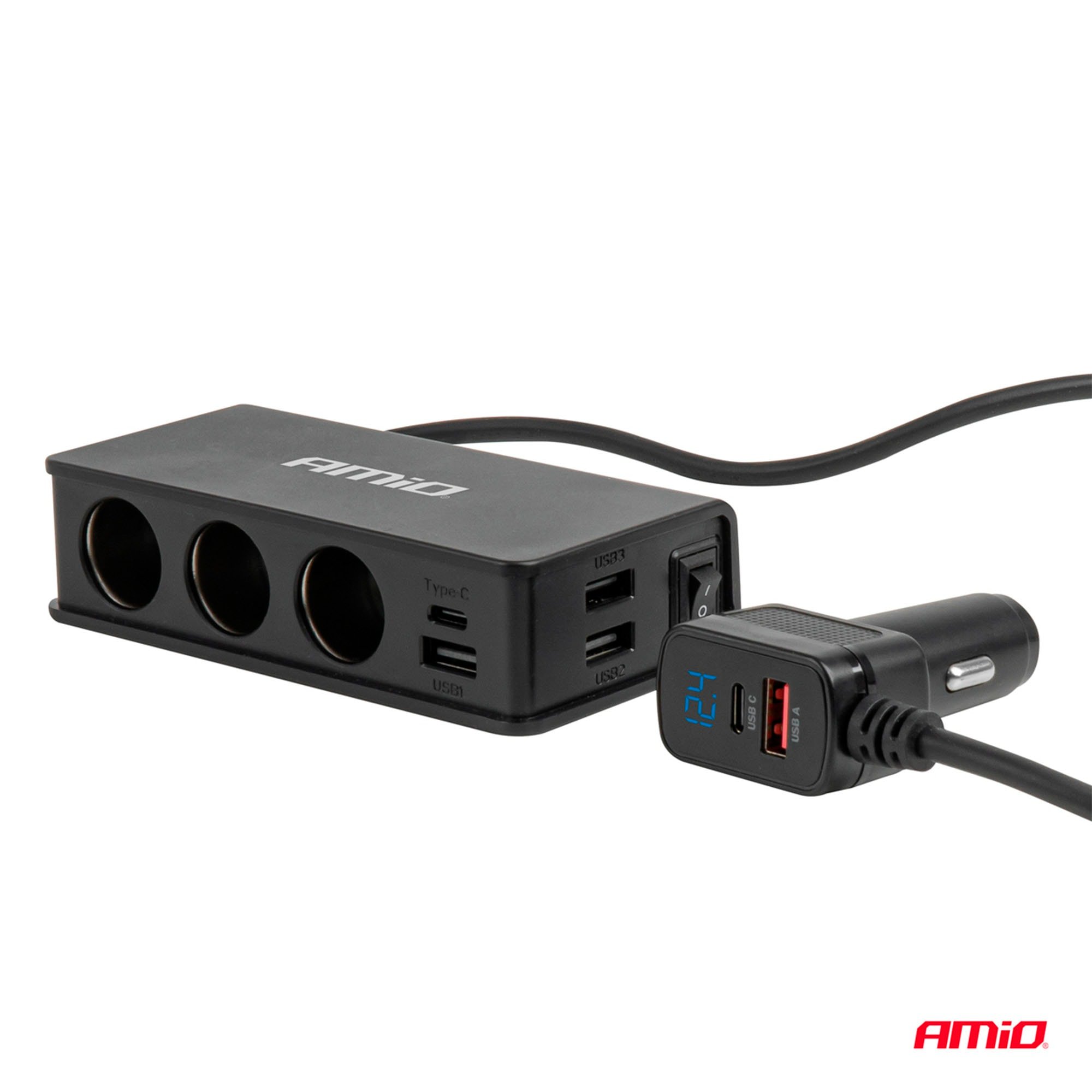 Monikäyttöisen 148 W Amio auton tupakansytytin jakajan avulla voit käyttää ja ladata useita laitteita samanaikaisesti autossa turvallisesti ja vaivattomasti myös ajon aikana. Jakajassa on kolme USB-A-porttia, sekä yksi USB-C-portti. QC 3.0 (Quick Charge) mahdollistaa nopean latauksen yhteensopiville laitteille, kun taas PD 3.0 (Power Delivery) tarjoaa älykkään ja tehokkaan latauksen USB-C-laitteille. 75 cm pitkä kaapeli tuo joustavuutta käyttöön ja helpottaa laitteen sijoittelua eri kokoisissa ajoneuvoissa. Kätevä ON/OFF-kytkin mahdollistaa virran hallinnan ilman, että laitetta tarvitsee irrottaa pistorasiasta.