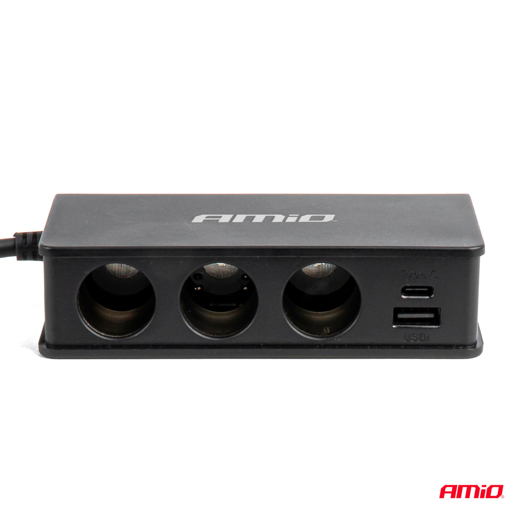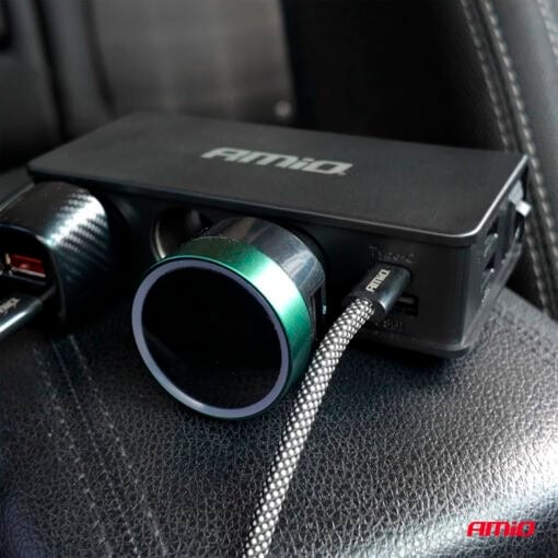 Monitoiminen Amio tupakansytytin haaroitin autoon USB-latauksella. Varustettu 3 × USB-A- ja 1 × USB-C-portilla sekä QC 3.0- ja PD 3.0 -pikalatauksella. Mahdollistaa useiden laitteiden turvallisen ja nopean lataamisen samanaikaisesti.