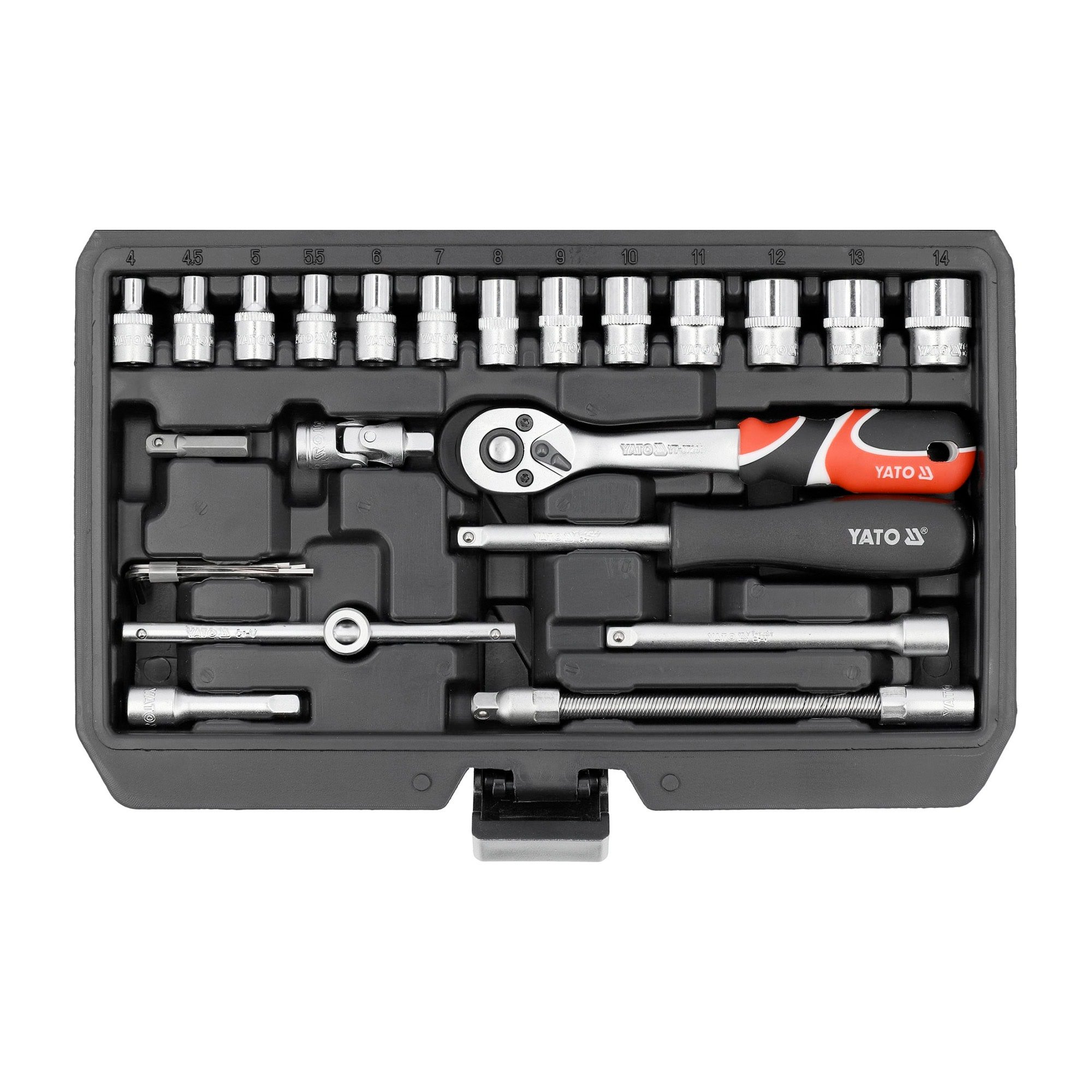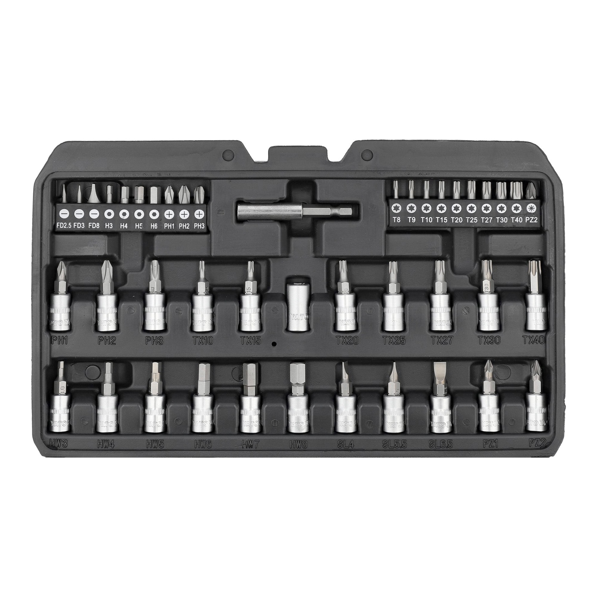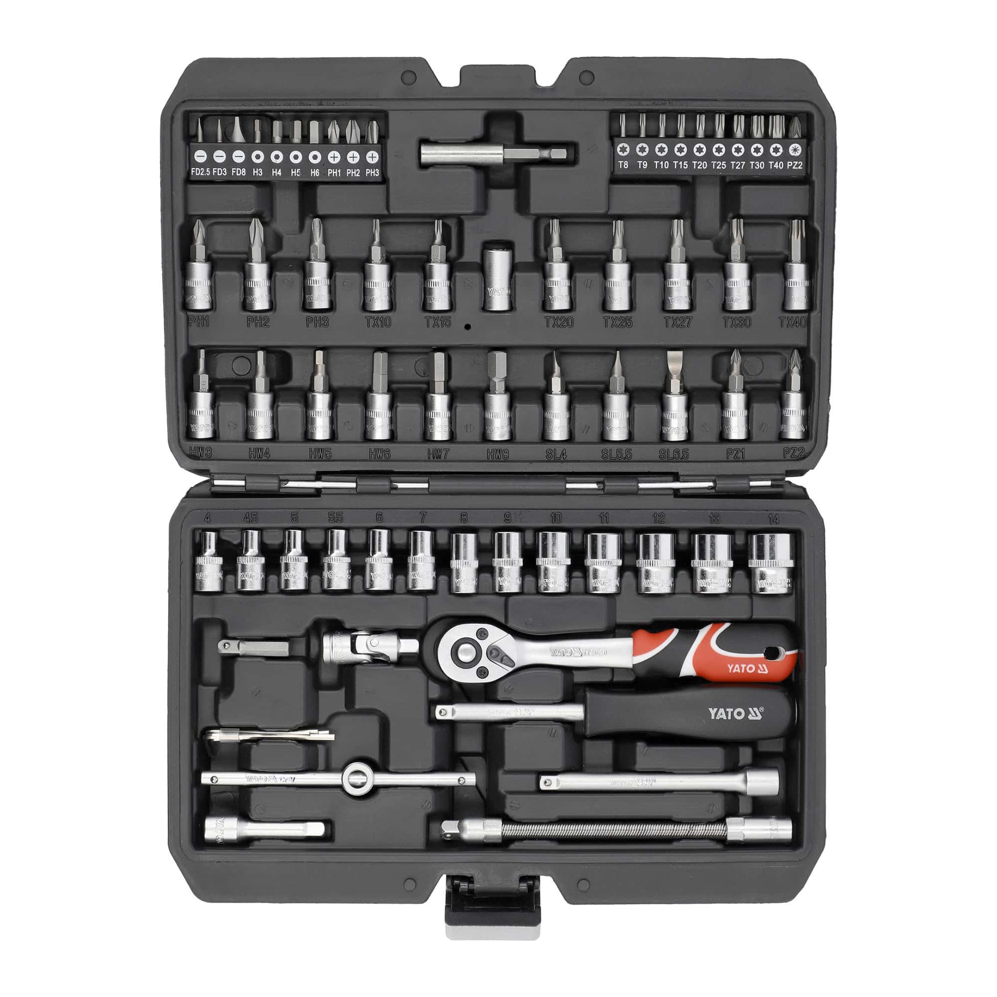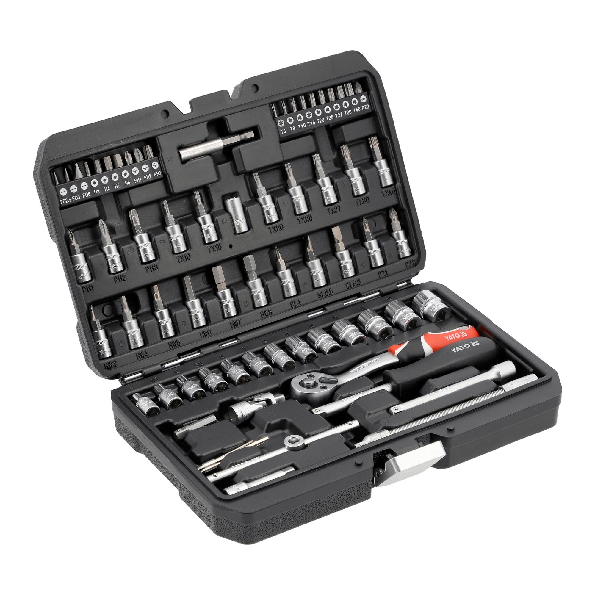 68-osainen työkalusarja monipuoliseen käyttöön autokorjaamoissa, konepajoissa, teollisuudessa ja kotitalouksissa. Sarja sisältää kattavan valikoiman hylsyjä ja kärkiä, jotka on valmistettu useista eri CrV-teräksistä (40CrV, CrV 6140, CrV 6150, CrV 50BV30) ja S2-teräksestä. Näiden materiaalien yhdistelmä takaa kestävyyden, tarkkuuden ja pitkäikäisyyden. 72-hampainen räikkä mahdollistaa tarkan työskentelyn myös ahtaissa paikoissa. As-Drive-järjestelmä parantaa väännön siirtymistä ja ehkäisee pulttien pyöristymistä. Kaikki osat toimitetaan tukevassa salkussa, joka helpottaa säilytystä ja kuljetusta.
