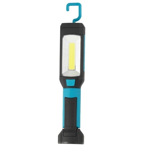 Kätevä ja tehokas lisävalo, jossa ripustuskoukku ja jalustamagneetti; led työvalon saa asetettua ja kiinnitettyä monenlaisiin paikkoihin esimerkiksi työmaalla, mahdollistaen työskentelyn kädet täysin vapaana. 3W COB – led valo valaisee tehokkaasti pimeimmätkin paikat. Lisäksi valaisimen päästä löytyy taskulamppu 1W led-polttimolla. Valmistettu iskunkestävästä ABS muovista.