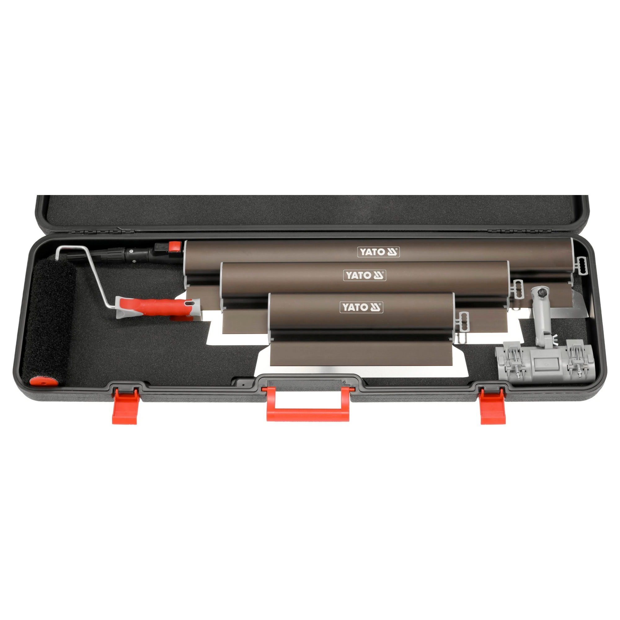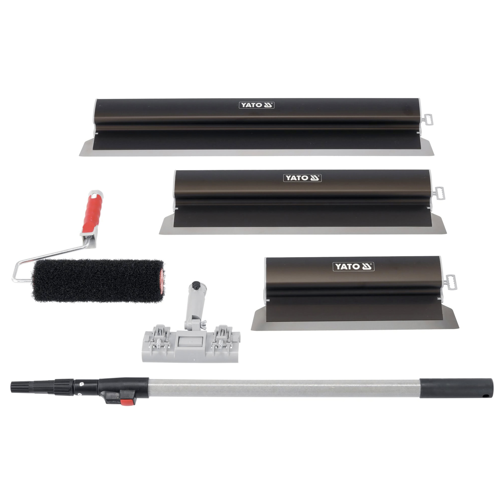 Valmistasoitelasta sarja tarvikkeineen sisältää kolme eri kokoista lastaa, teleskooppivarren sekä tasoitusrullan, kestävä ja monipuolinen ratkaisu seinien ja kattojen sileään viimeistelyyn.