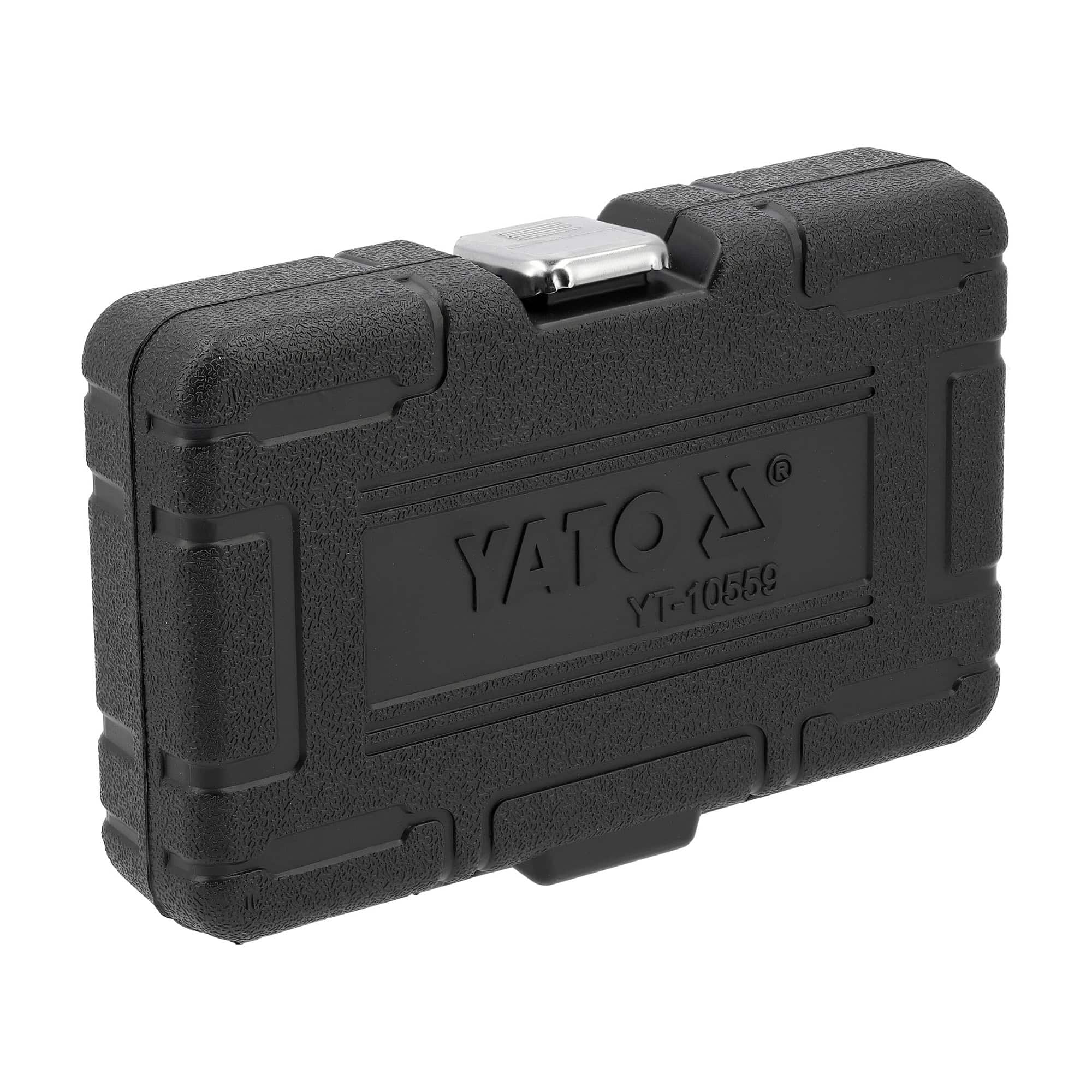 Yaton 1/2” hylsy- ja uloslyöntisarja, joka kestää suuret isku- ja värähtelykuormitukset. Sarja soveltuu muttereiden avaamiseen ja kiristämiseen sekä jumiutuneiden tapien, pulttien ja holkkien irrotukseen. As-Drive-rakenne takaa maksimaalisen väännön ilman lipsumista, ja lukitusmekanismit varmistavat hylsyjen tukevan kiinnityksen. Mukana on myös uloslyöntityökalu jumiutuneiden osien irrotukseen. Sopii käytettäväksi iskevien sähkötyökalujan kanssa.