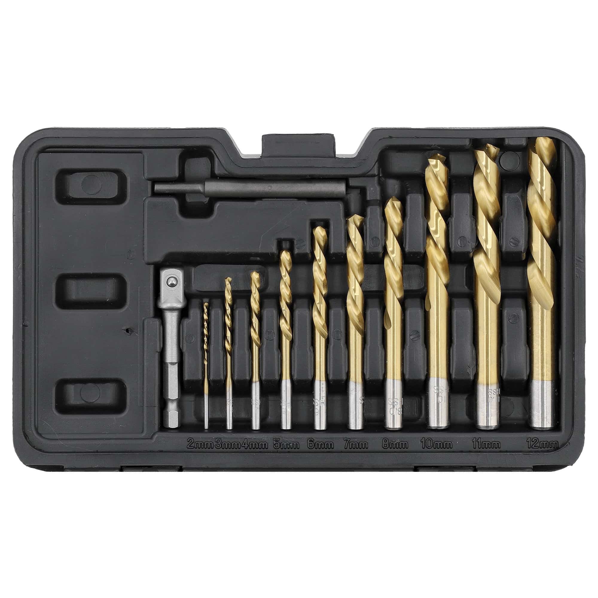 • 10 ruuvitaltta- ja poranterää: 2, 3, 4, 5, 6, 7, 8, 10, 11, 12 mm
