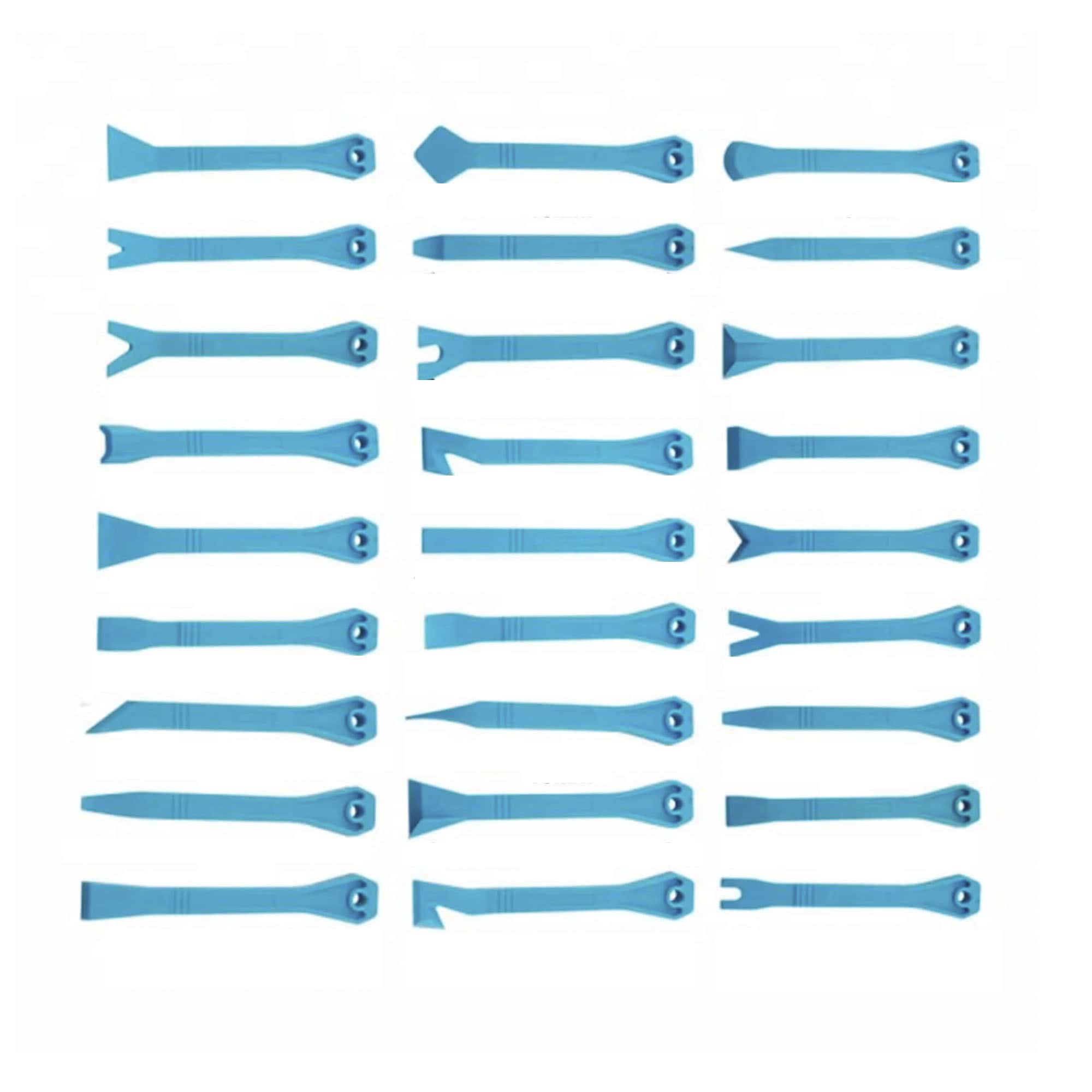 27-osainen verhoilun irrotustyökalusarja, joka sopii monenlaiseen käyttöön, kuten auto-, meri- tai lentokonekäyttöön. Se soveltuu erinomaisesti auton audio/radion, ovipaneelin, ikkunoiden, sisustustarvikkeiden, listan, kiinnikkeiden, tunnuksien tai jopa polkupyörän renkaiden irrottamiseen. Irrotustyökaluissa on ergonominen muotoilu ja ne ovat erittäin kevyitä, joten säästät vaivaa työskennellessäsi. Tämä setti sisältää kaiken tarvitsemasi verhoilun parissa työskentelyyn. Työkalut ovat valmistettu laadukkaasta nailonmateriaalista, joten ne ovat myös hellävaraisempia pehmeille pinnoille kuin esimerkiksi metallityökalut, mikä auttaa vähentämään naarmuja ja viiltoja.