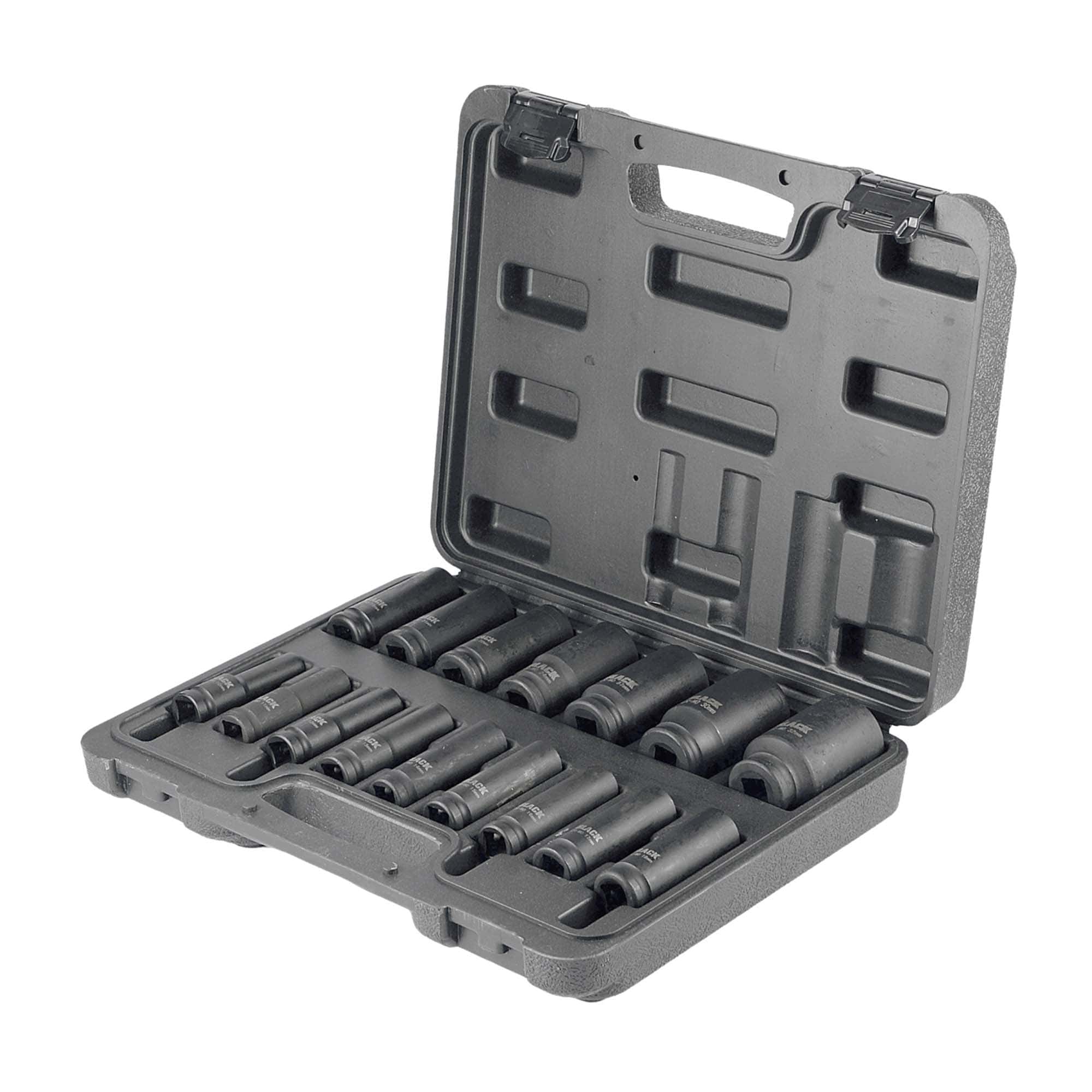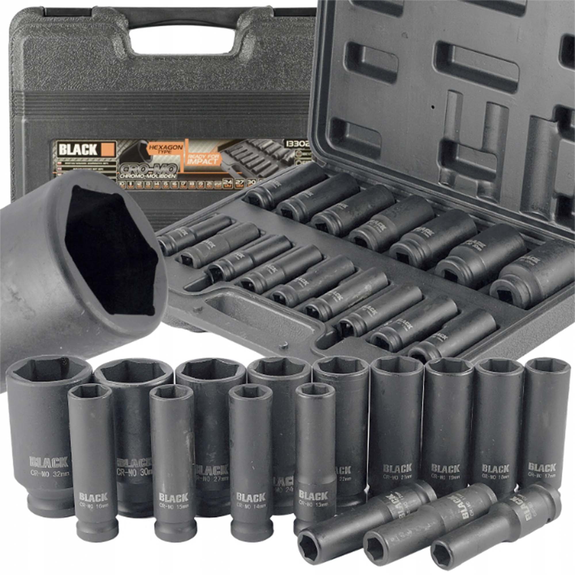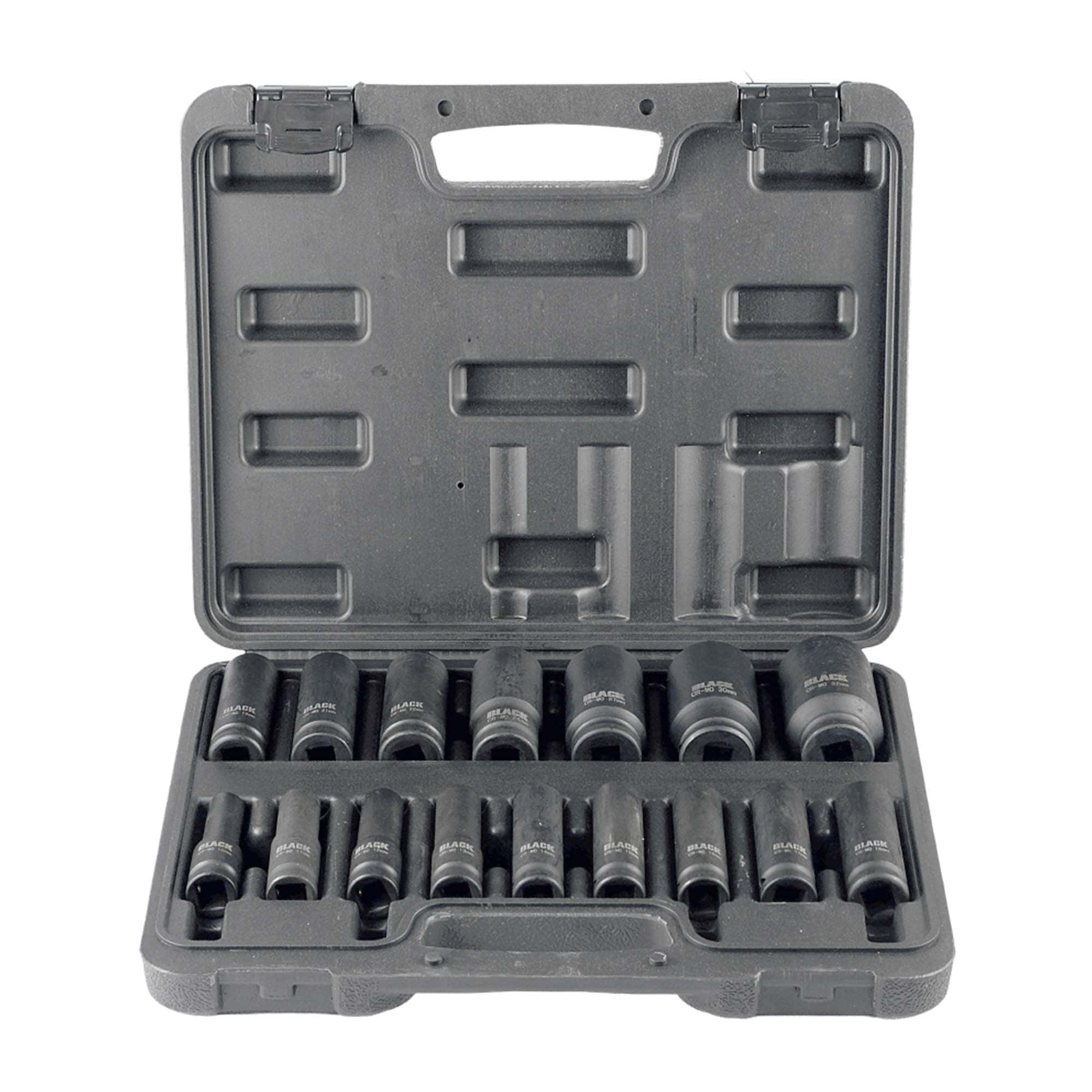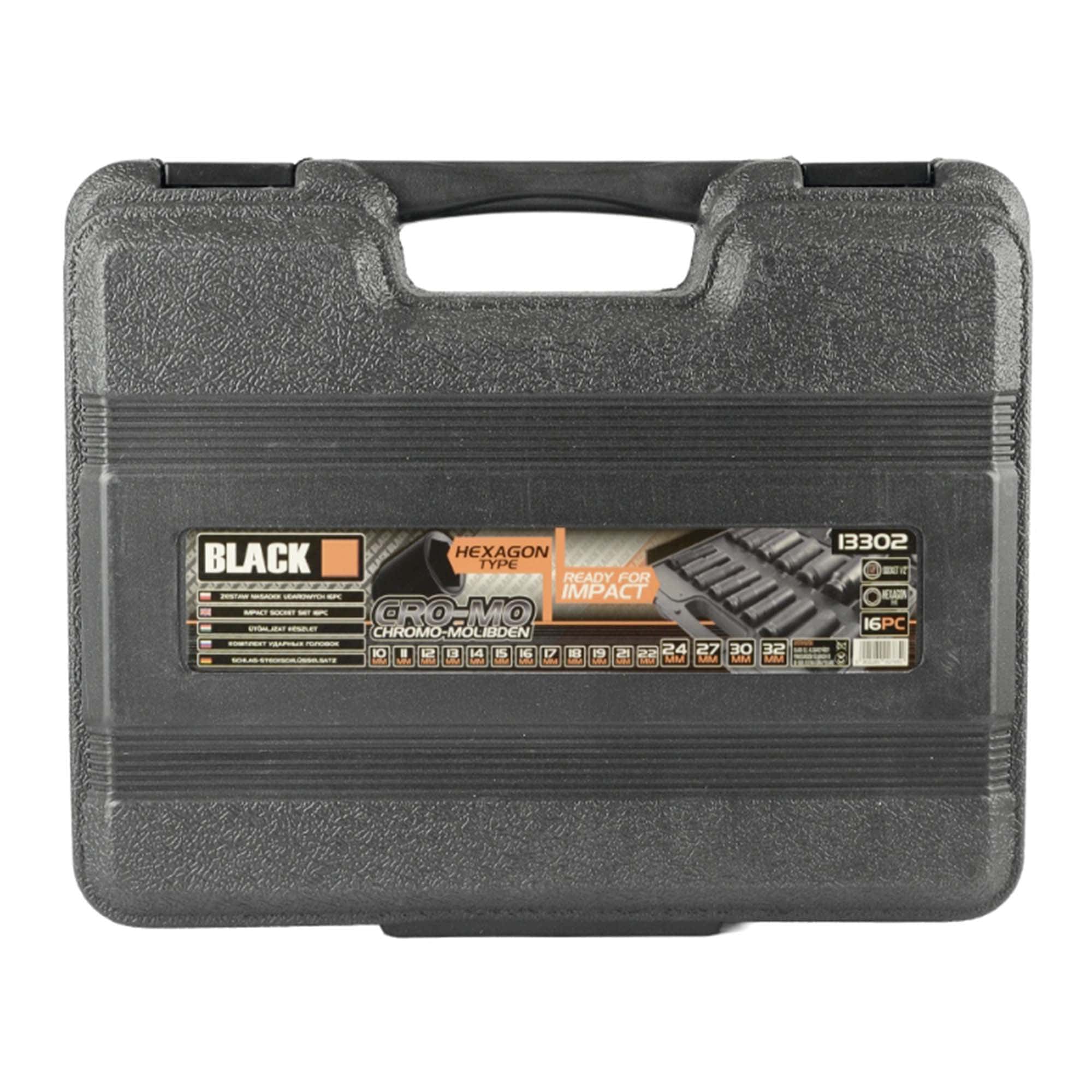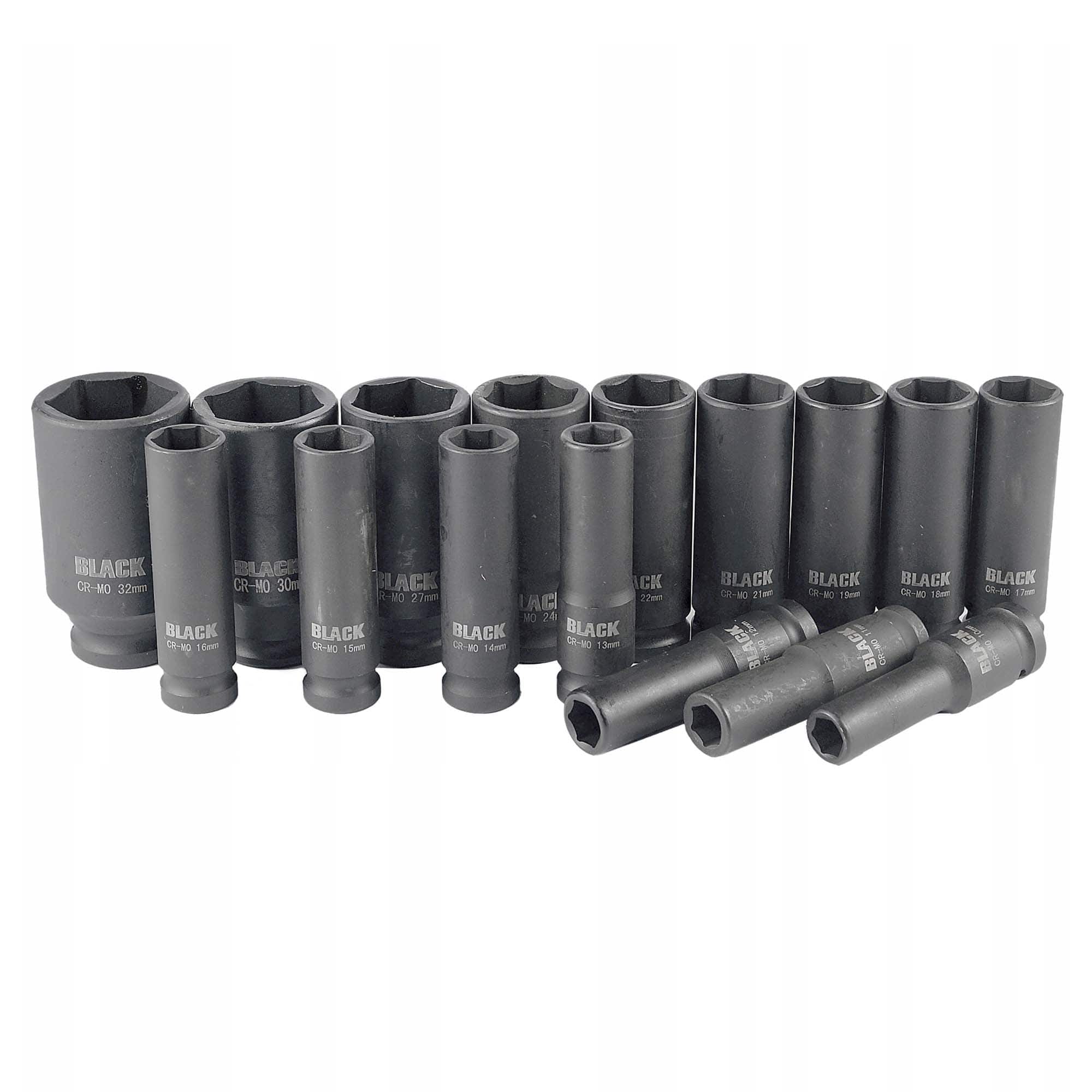 16-osainen Black 1/2″ -iskuhylsysarja 10–32 mm vaativien ammattilaisten ja korjaamokäyttäjien tarpeisiin. Sarjassa on laaja kokovalikoima hylsyjä. Jokainen hylsy on valmistettu CR-V-teräksestä.